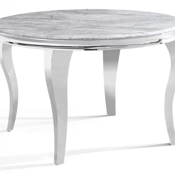 CLEARANCE 1.3m Louis Grey Round Marble Dining Table With Polished Circular Stainless Steel Legs