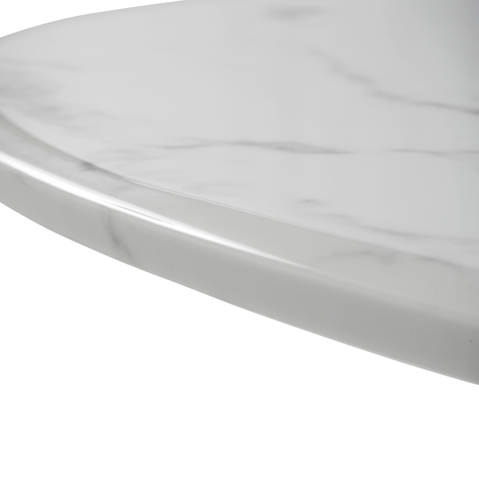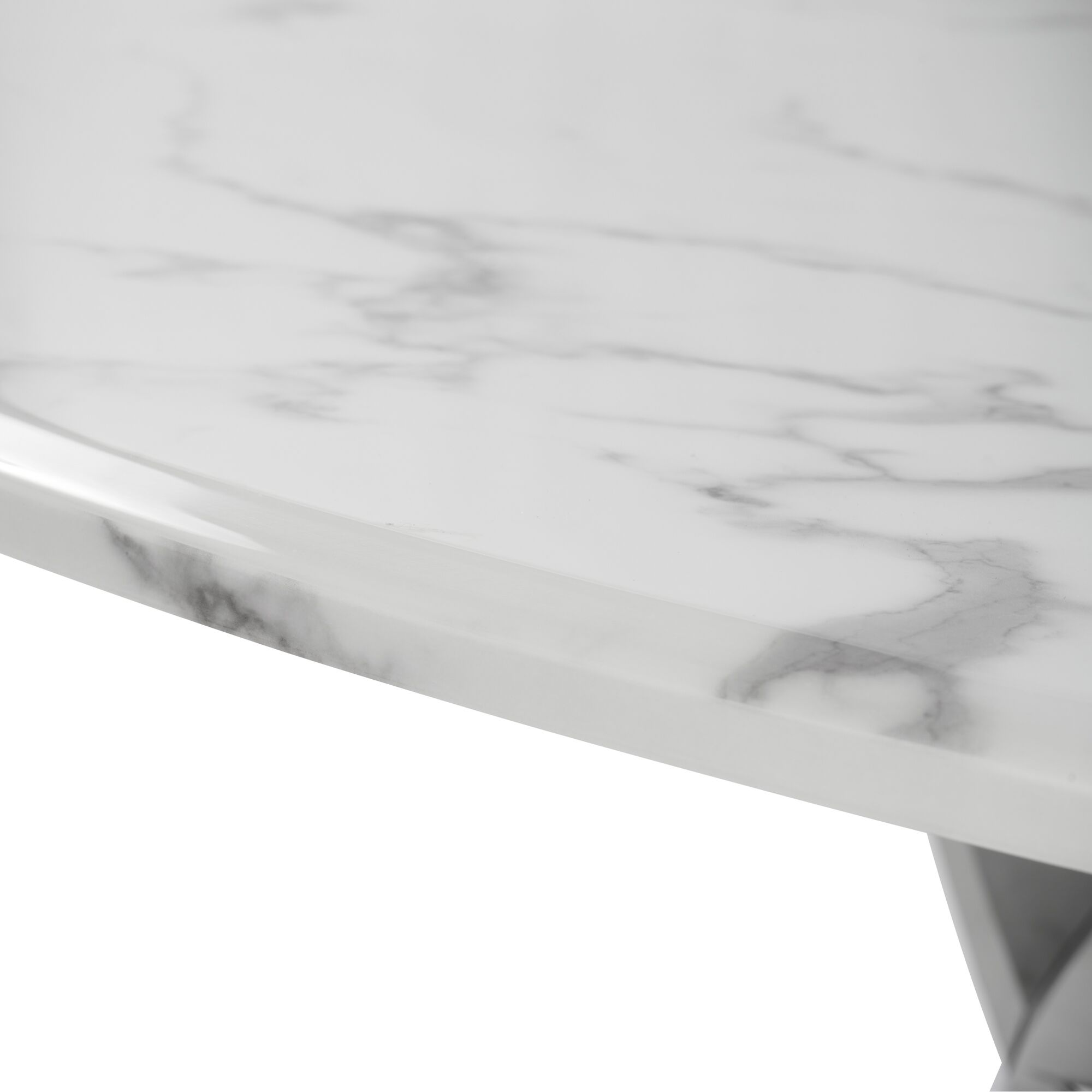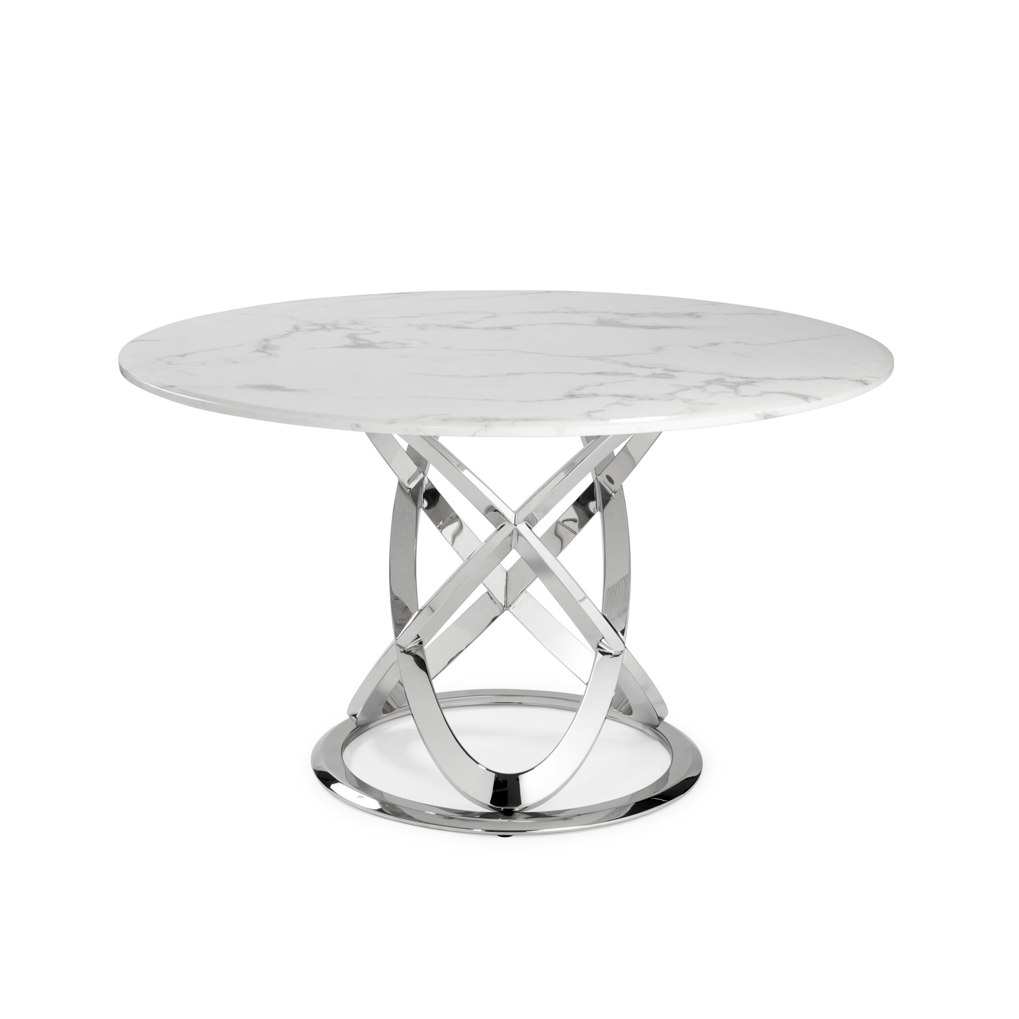 1.3M Pedestal Polished Circular Stainless Steel Dining Table with White Marble Effect