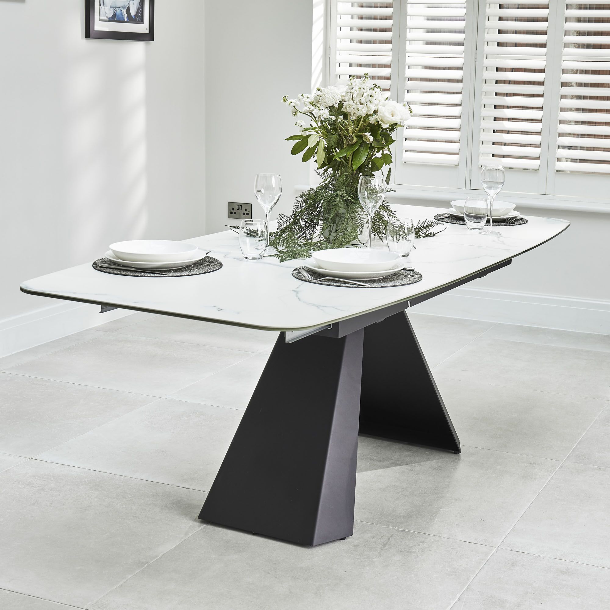 Adjust your table as per requirements when you purchase this striking ceramic extending dining table from Grosvenor Furniture online.
