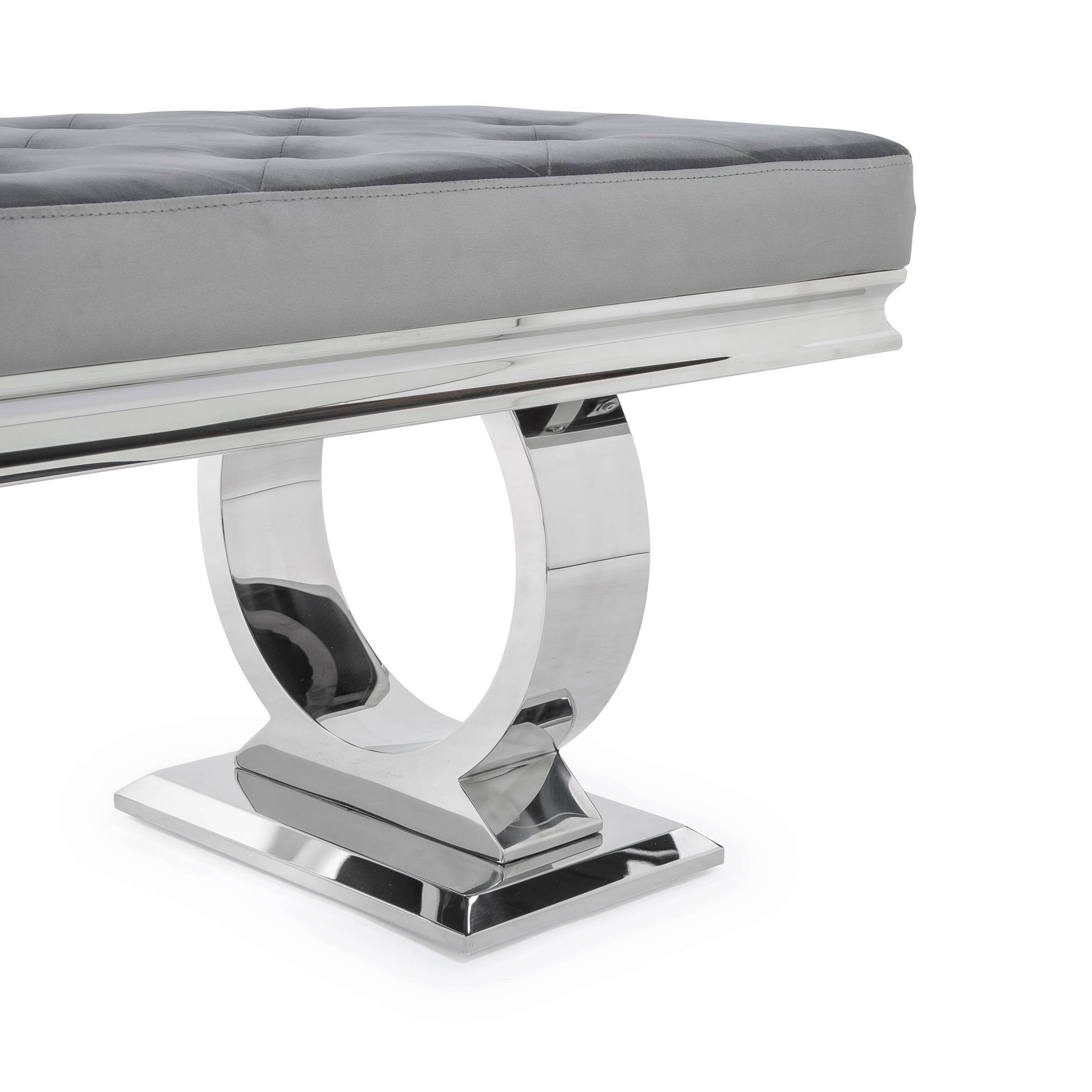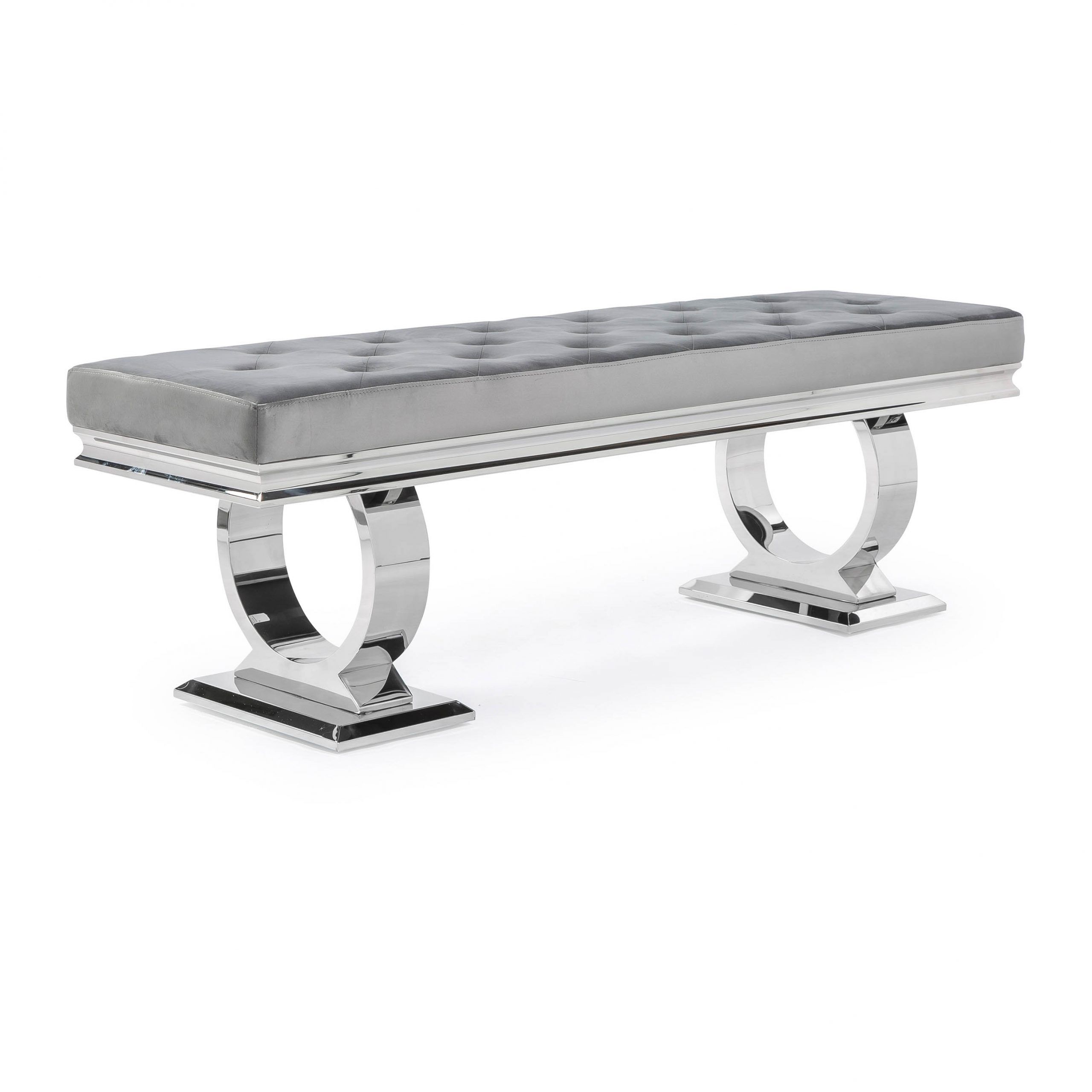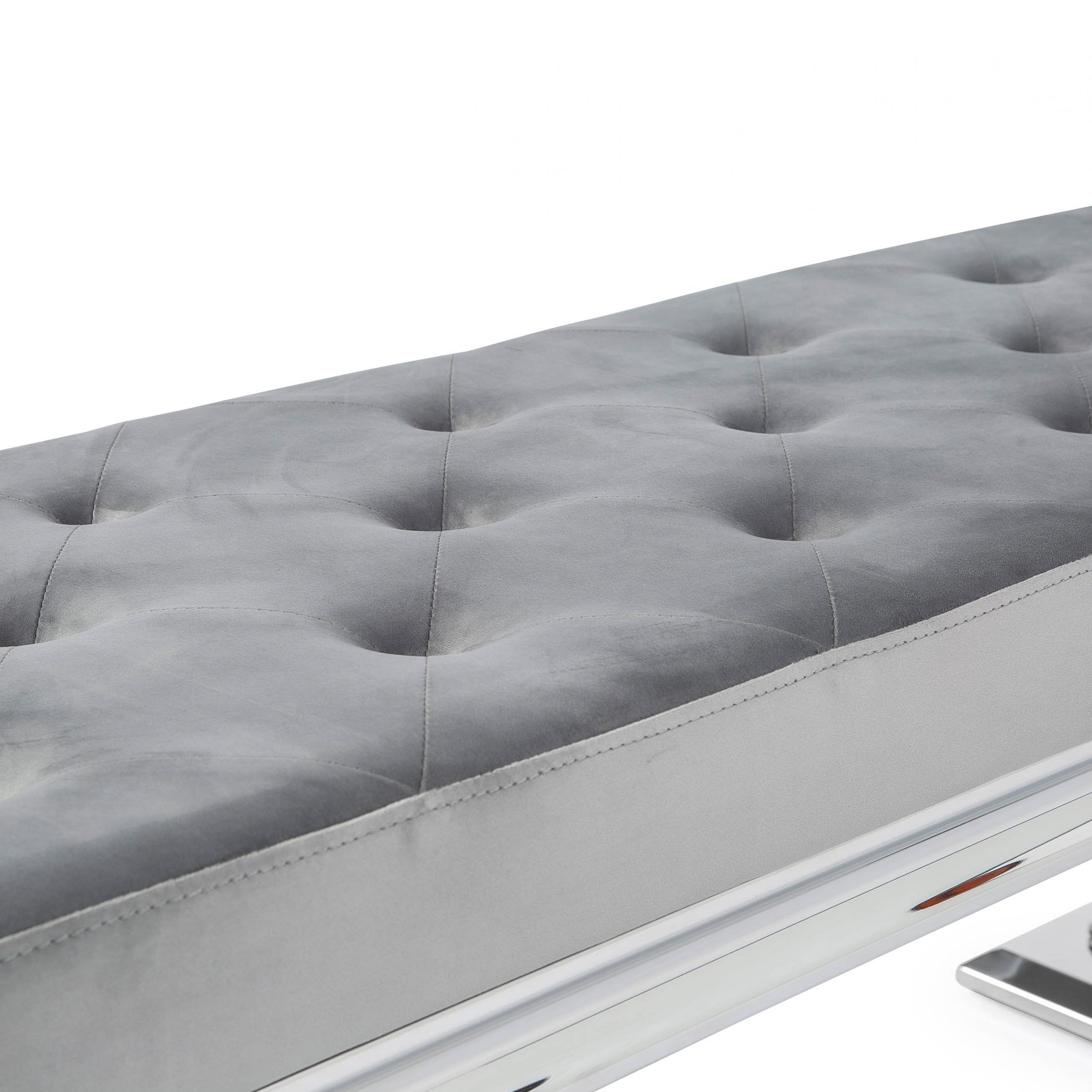 Arianna Polished Steel Grey Velvet Dining Bench