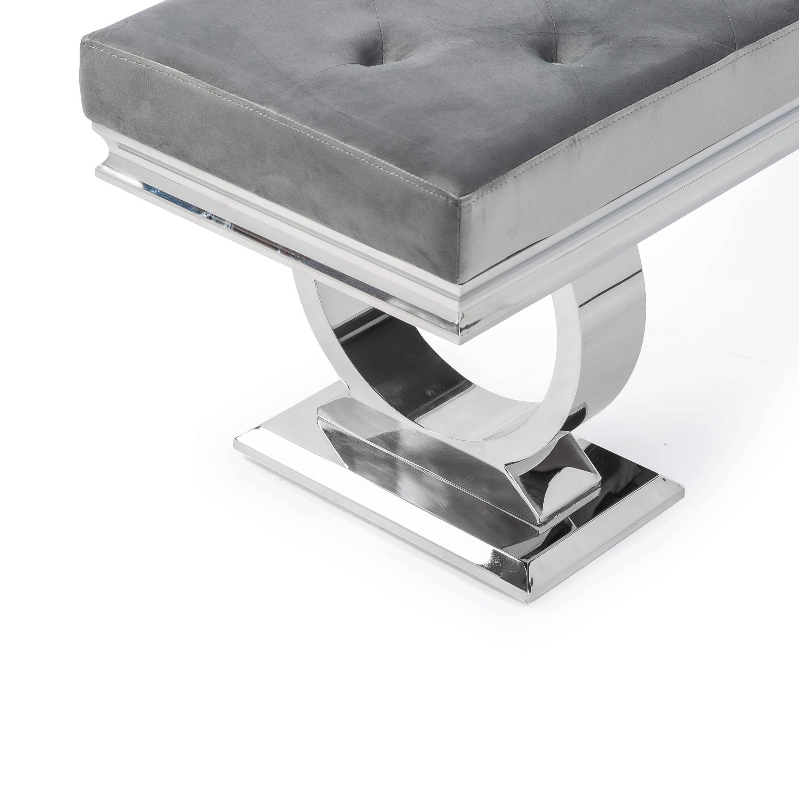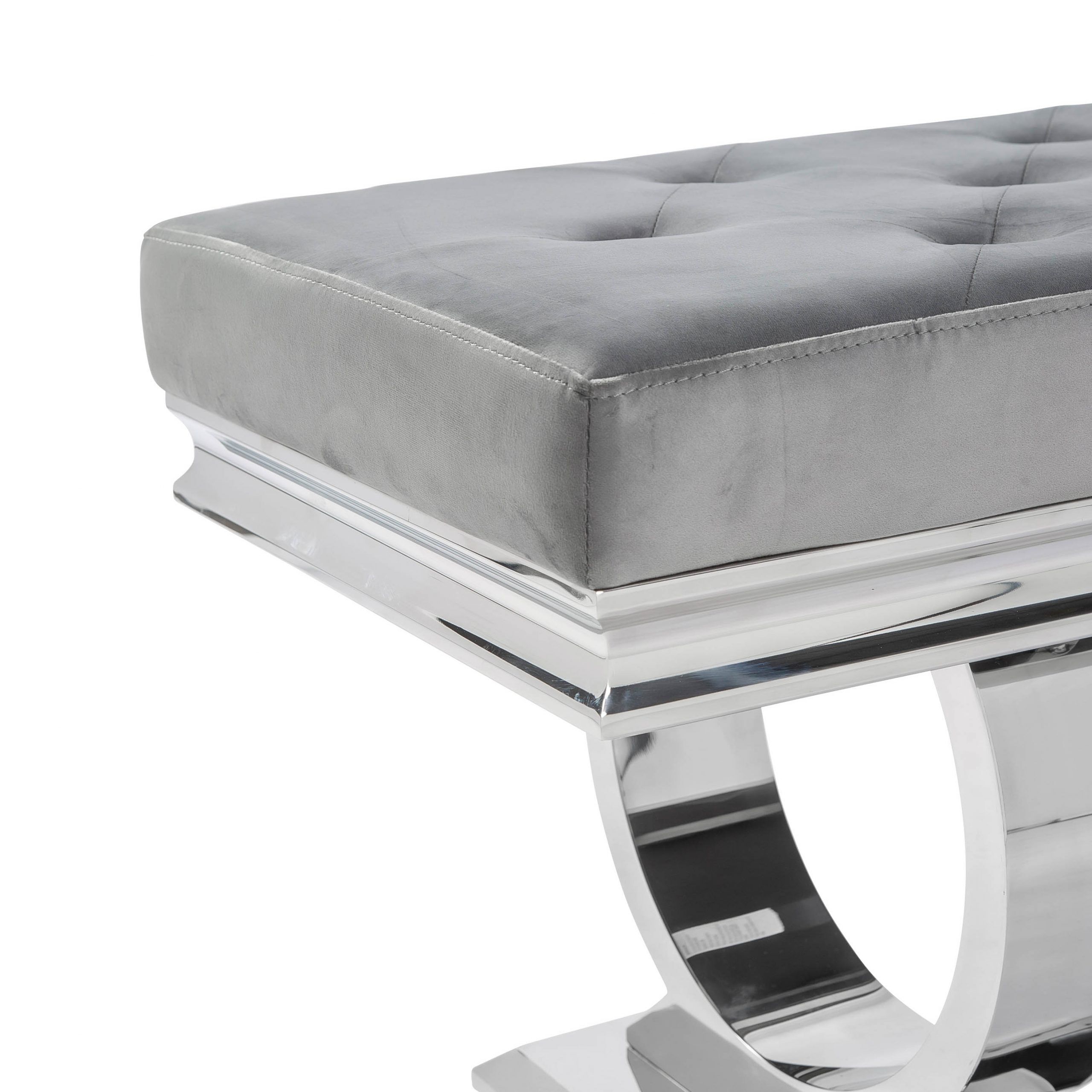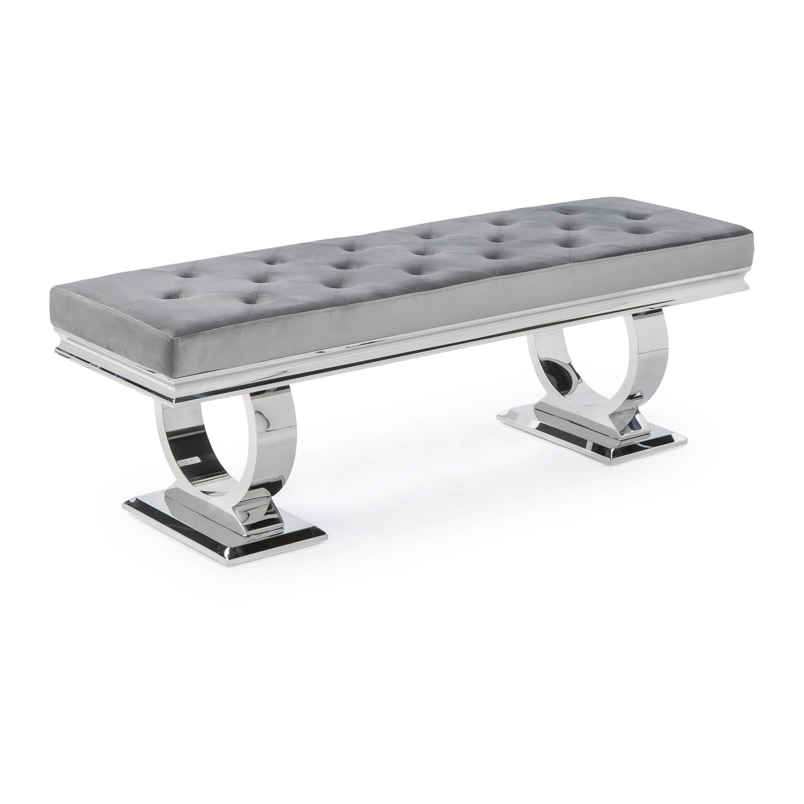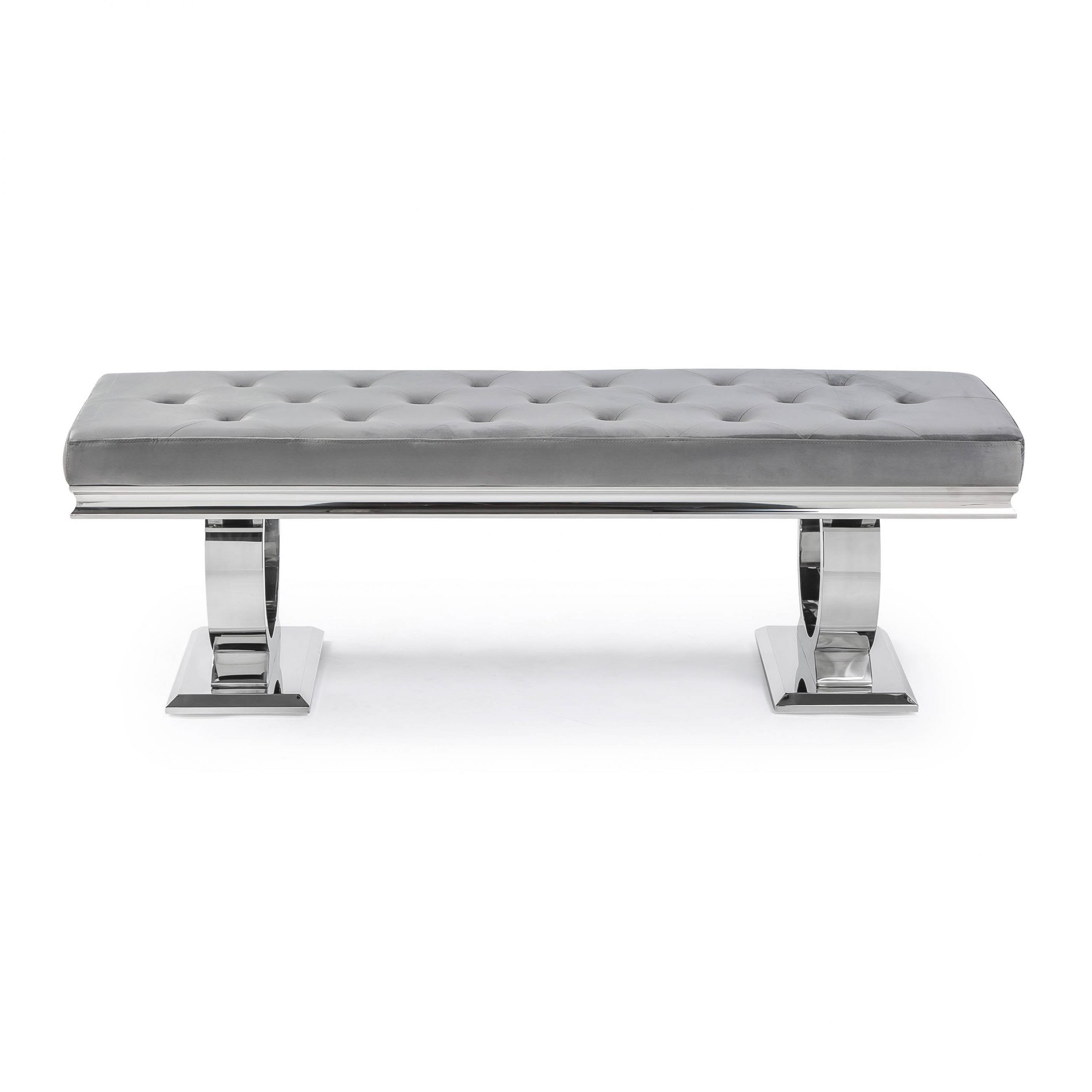Arianna Polished Steel Grey Velvet Dining Bench