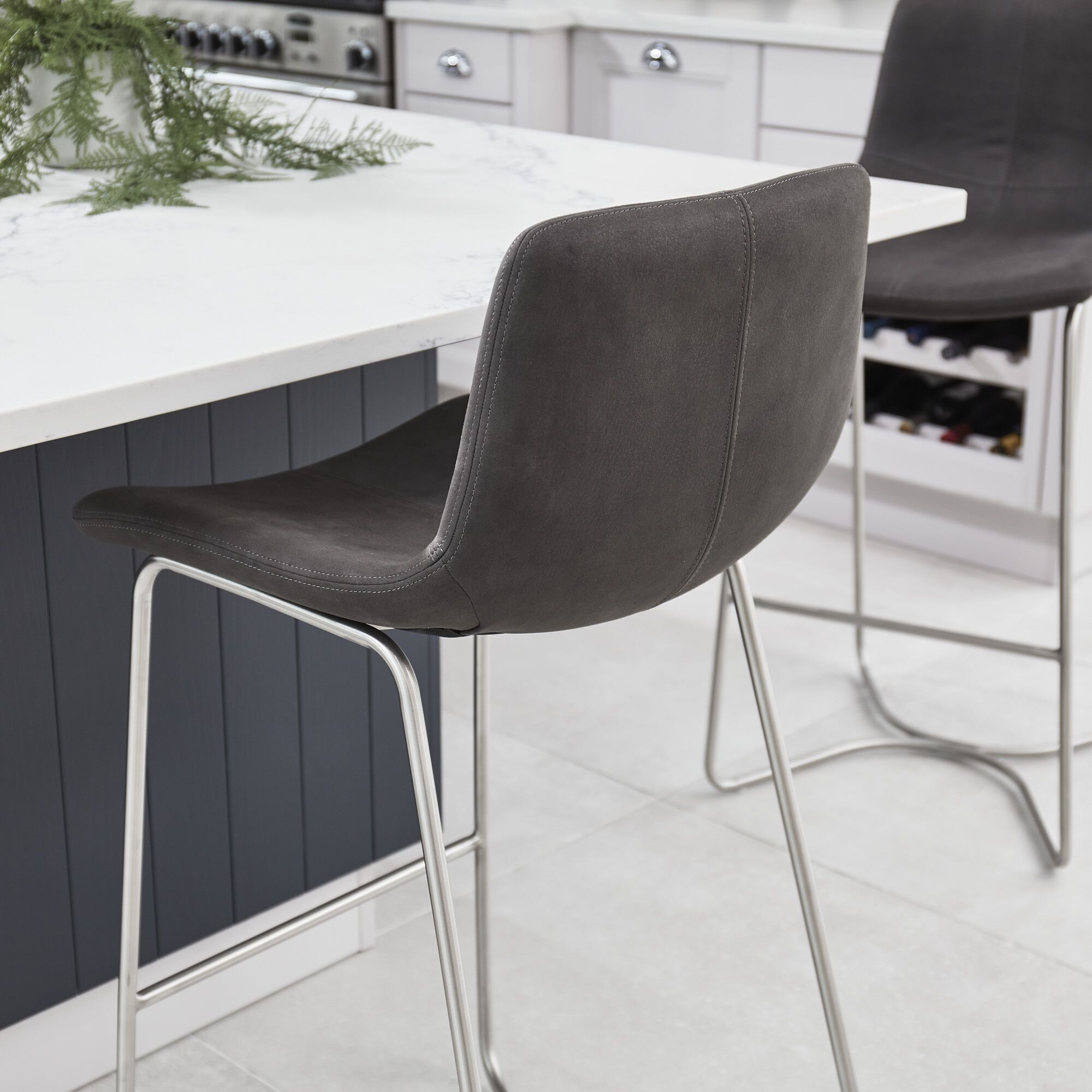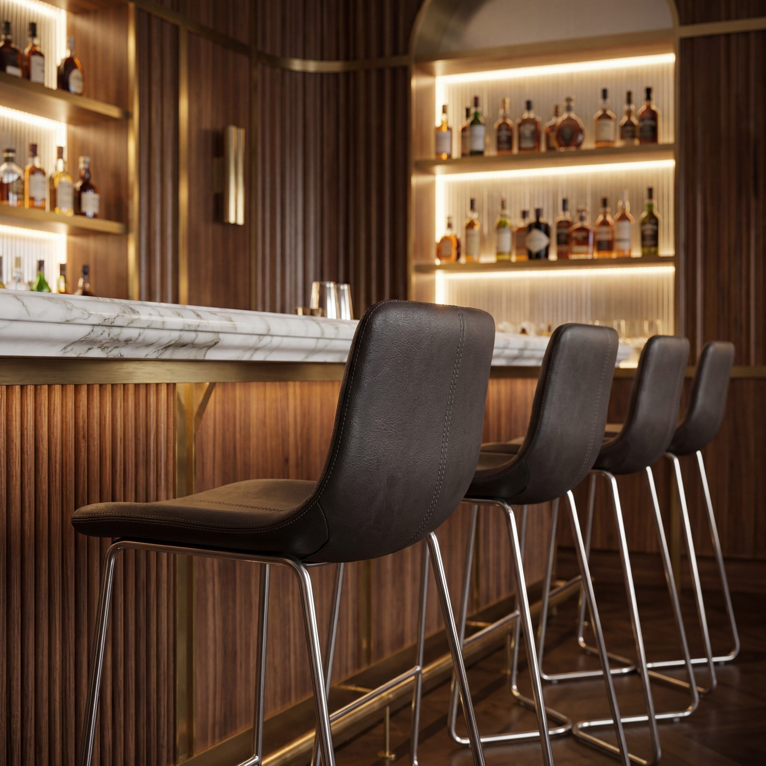 Our Austin counter bar stool offers a minimal yet comfortable design, featuring a brushed steel framework.