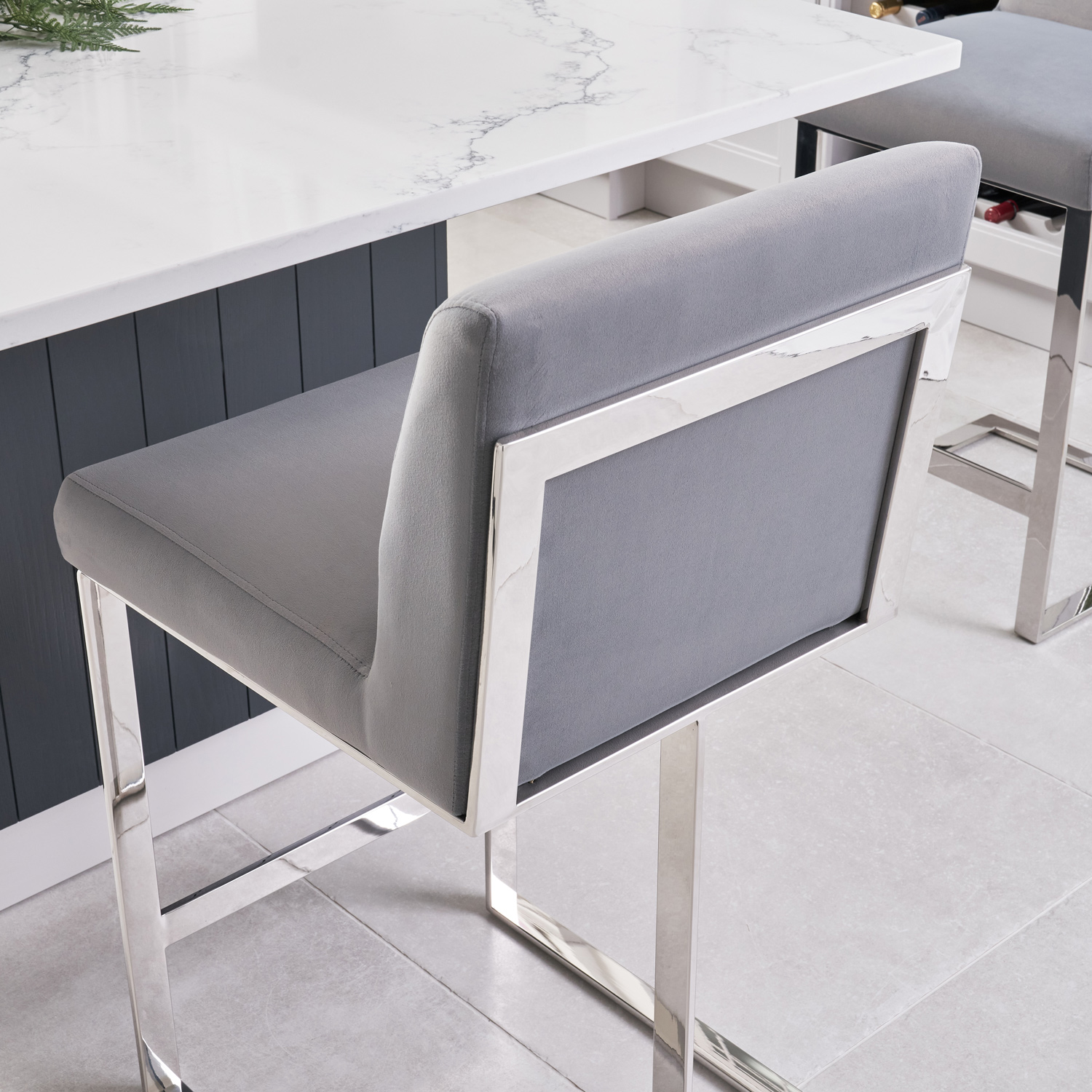 Bailey Grey Velvet Kitchen Barstool – Polished Steel