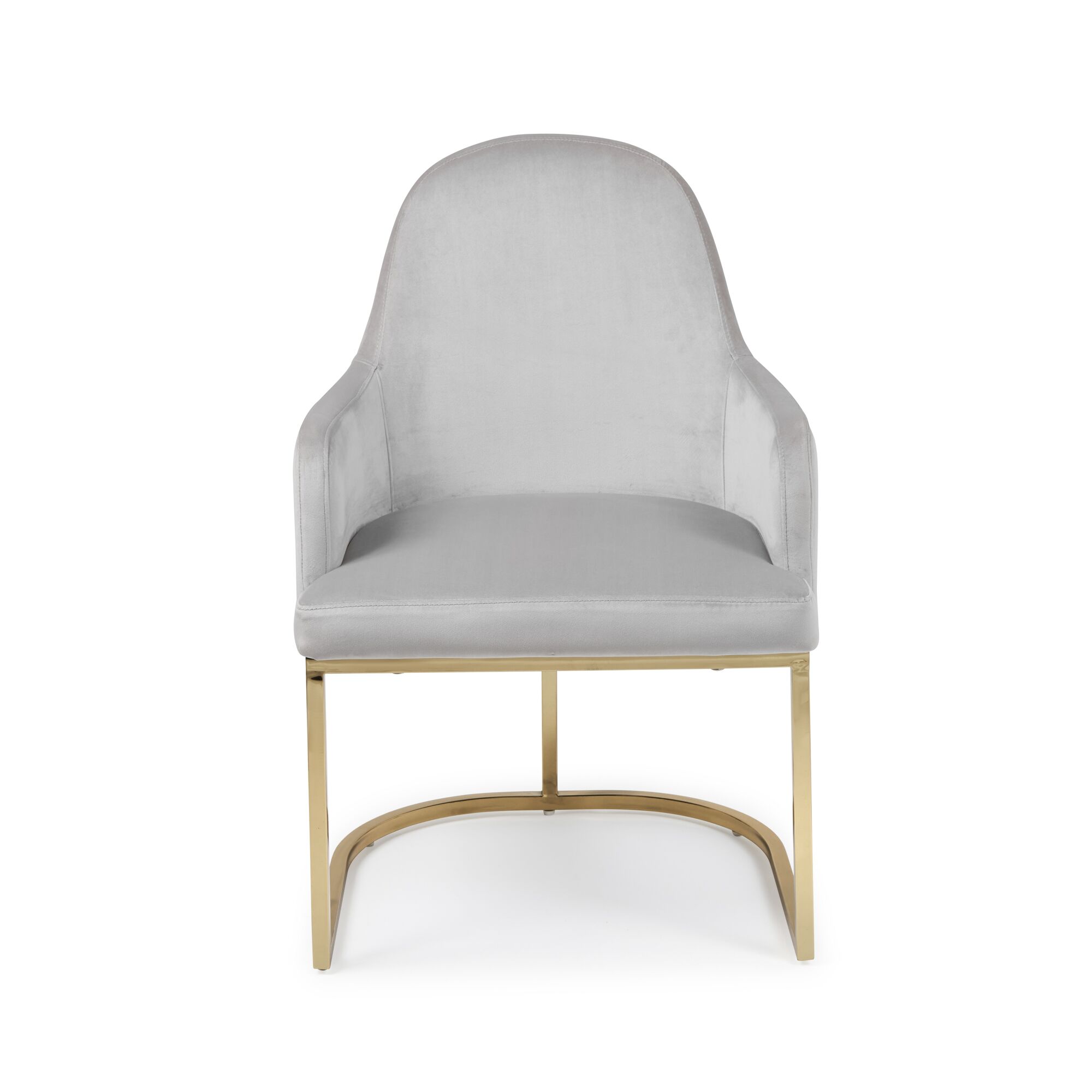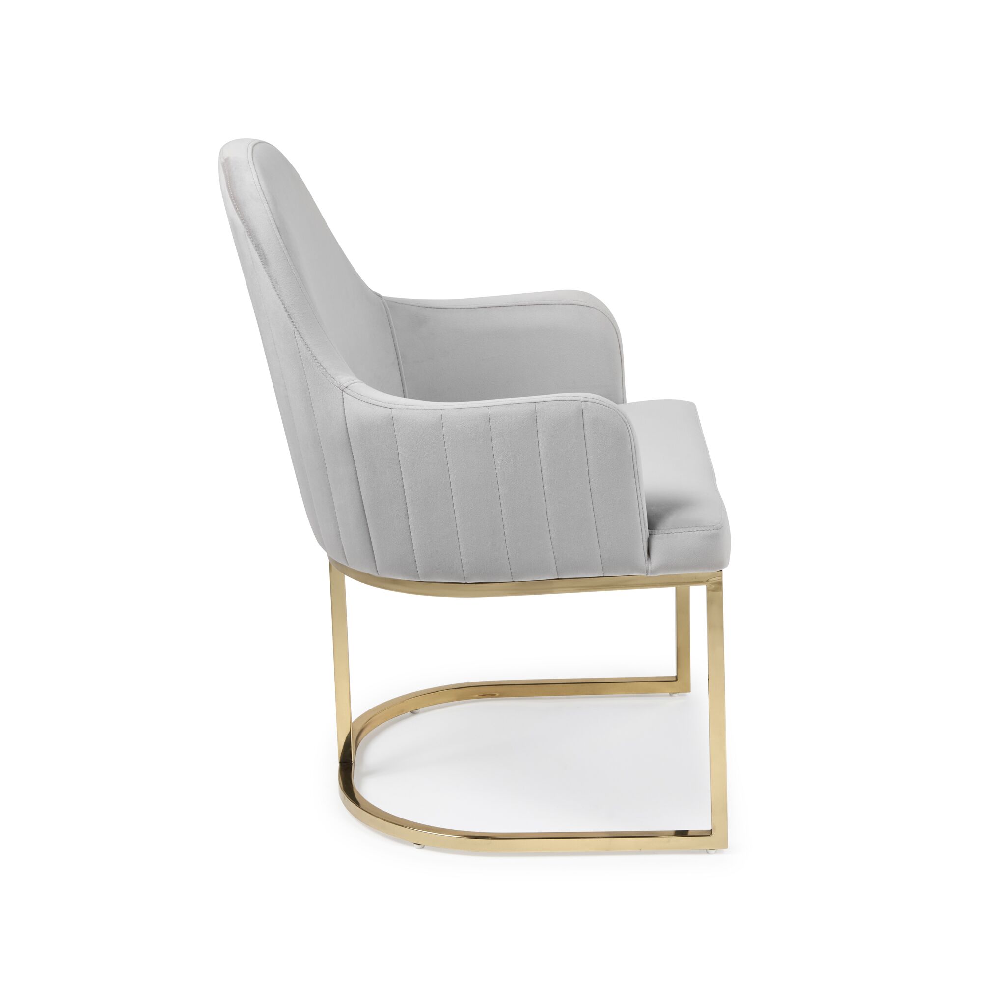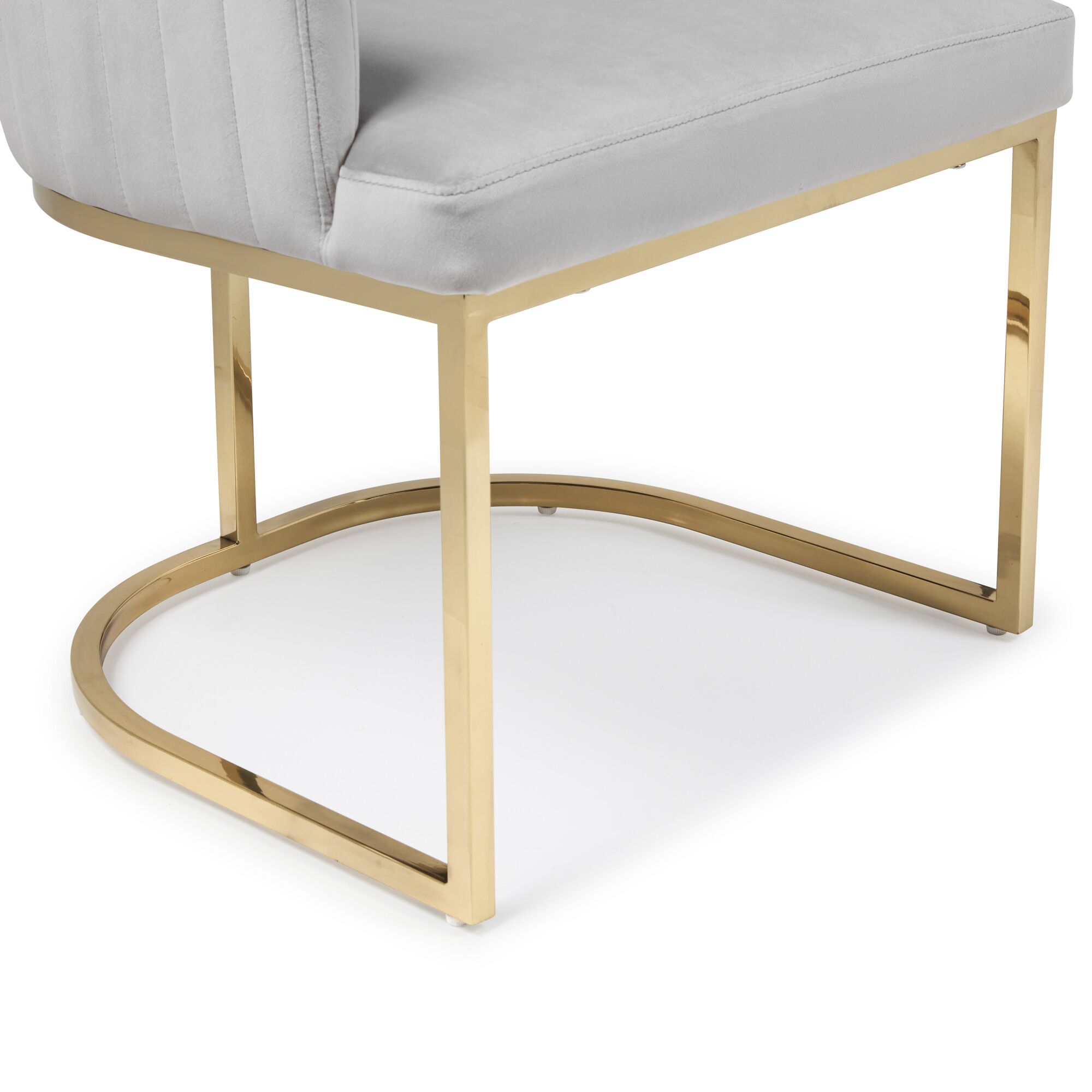 Barcelona Light Grey Brushed Velvet Upholstered Dining Chair – Golden Stainless Steel Base