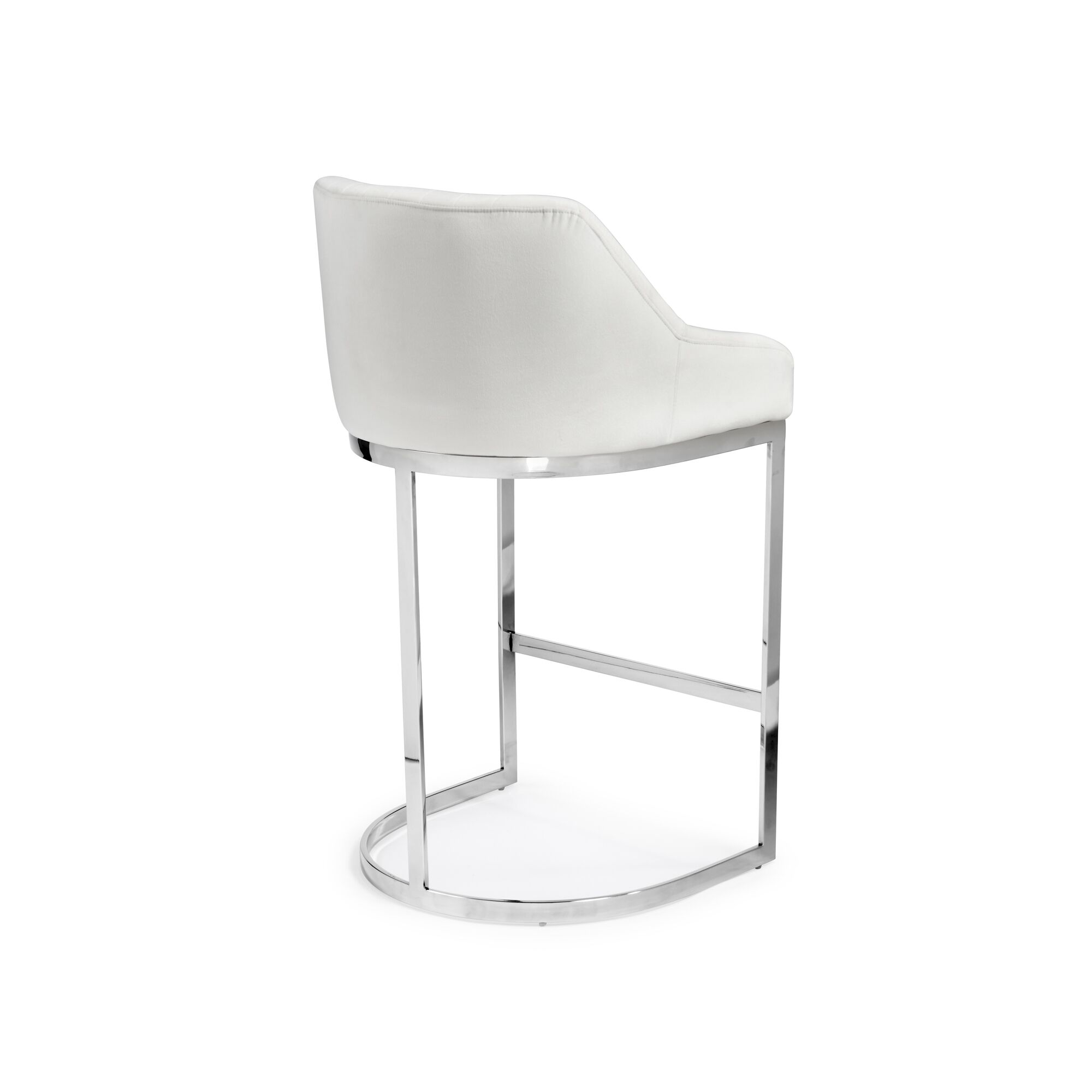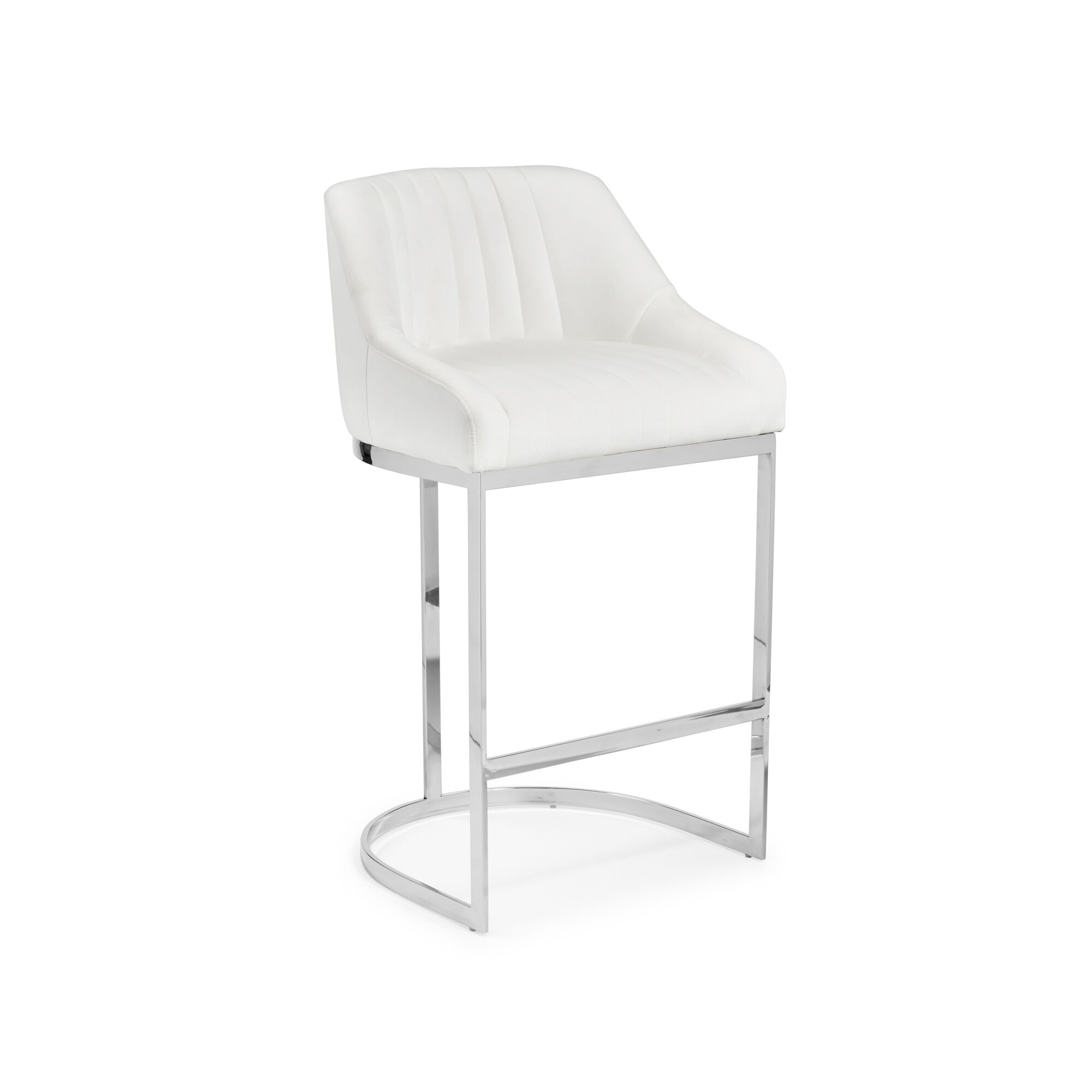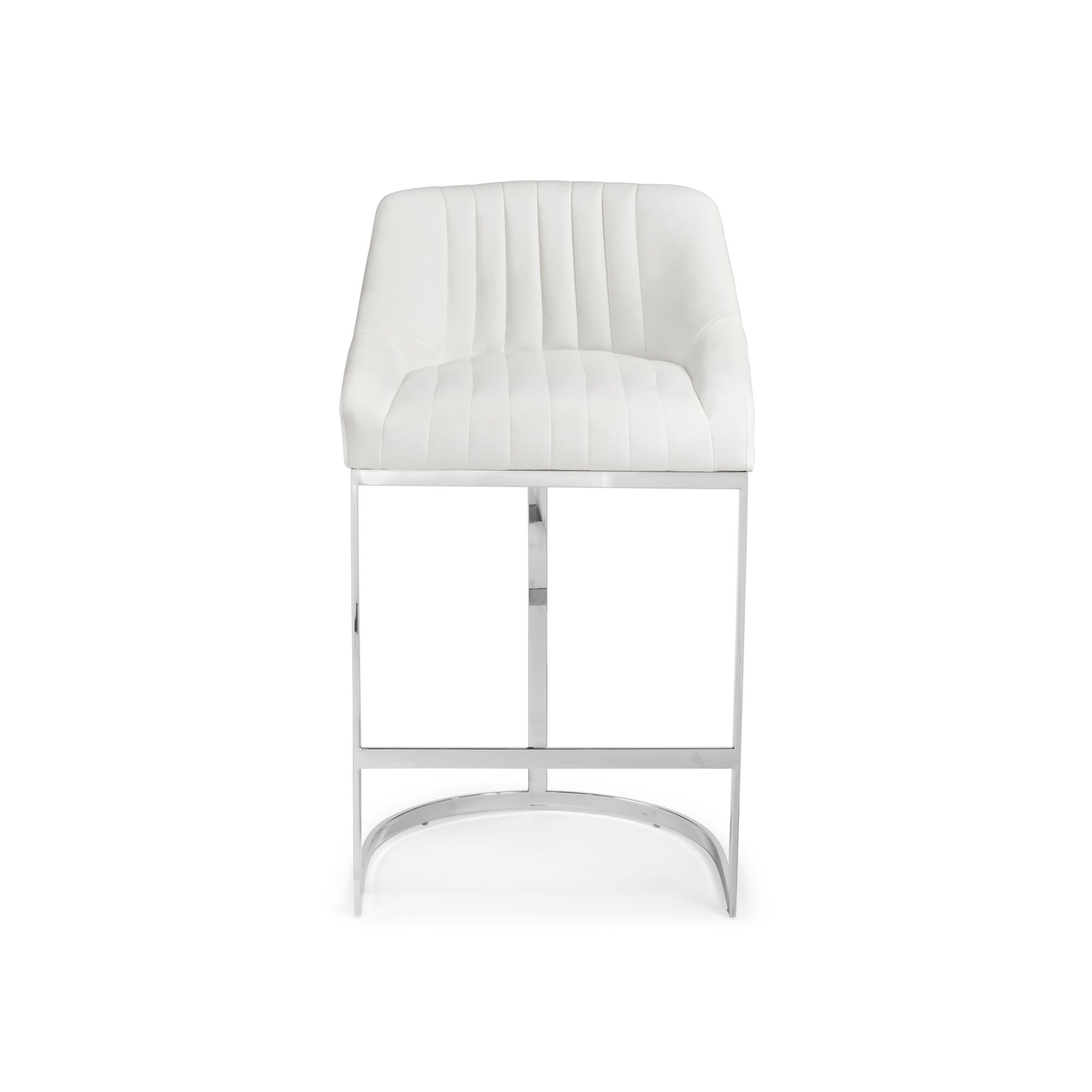Barcelona White Velvet Bar Stool with a Stainless Steel Frame