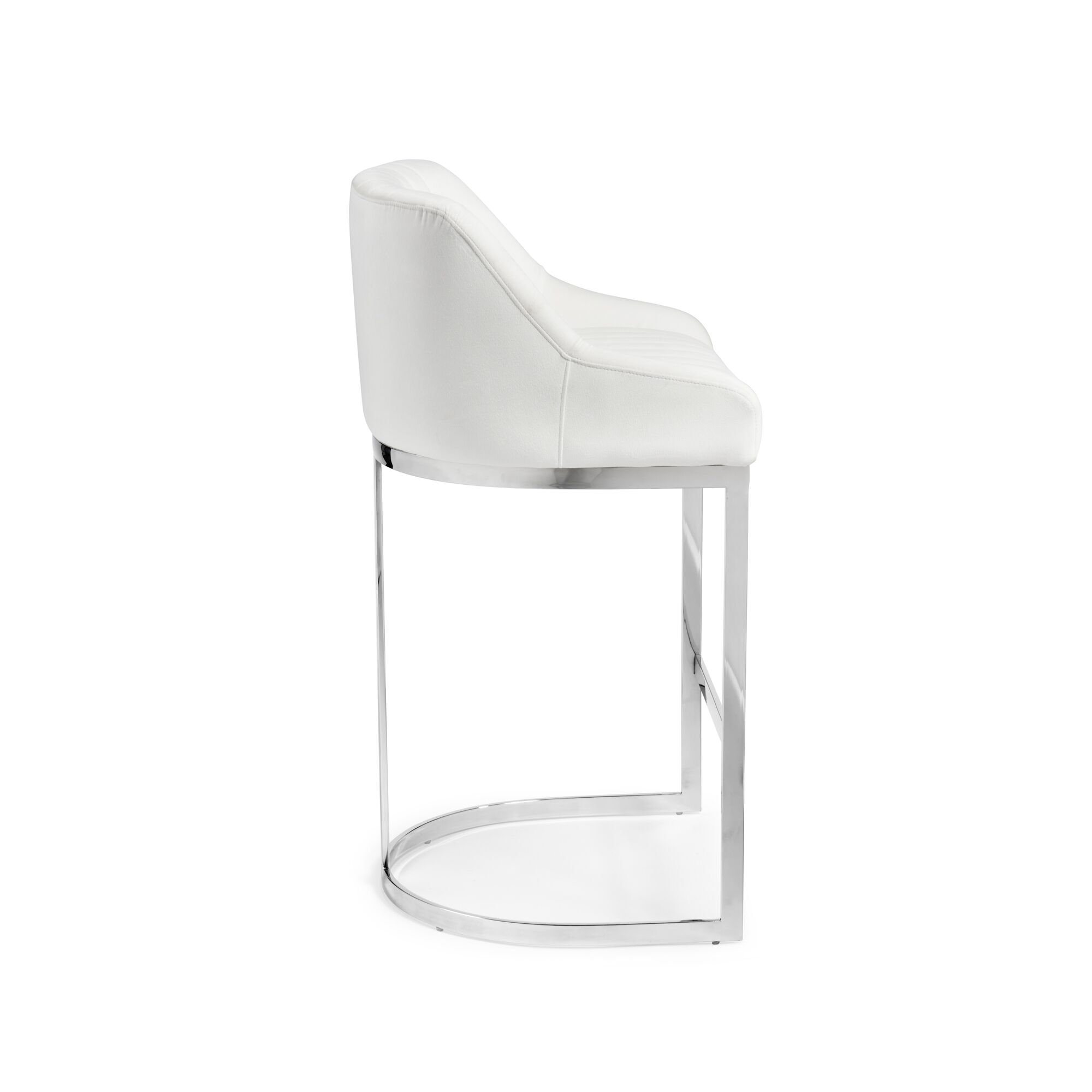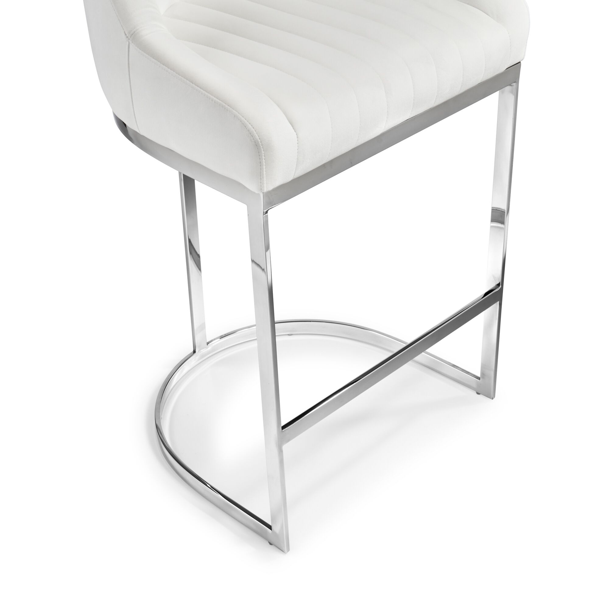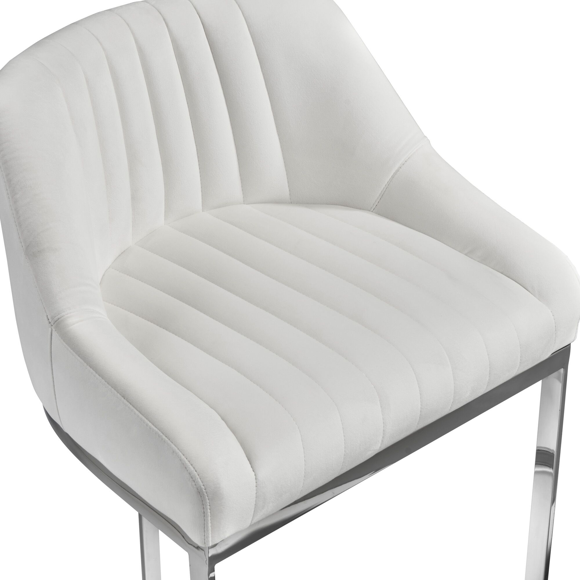 Barcelona White Velvet Bar Stool with a Stainless Steel Frame