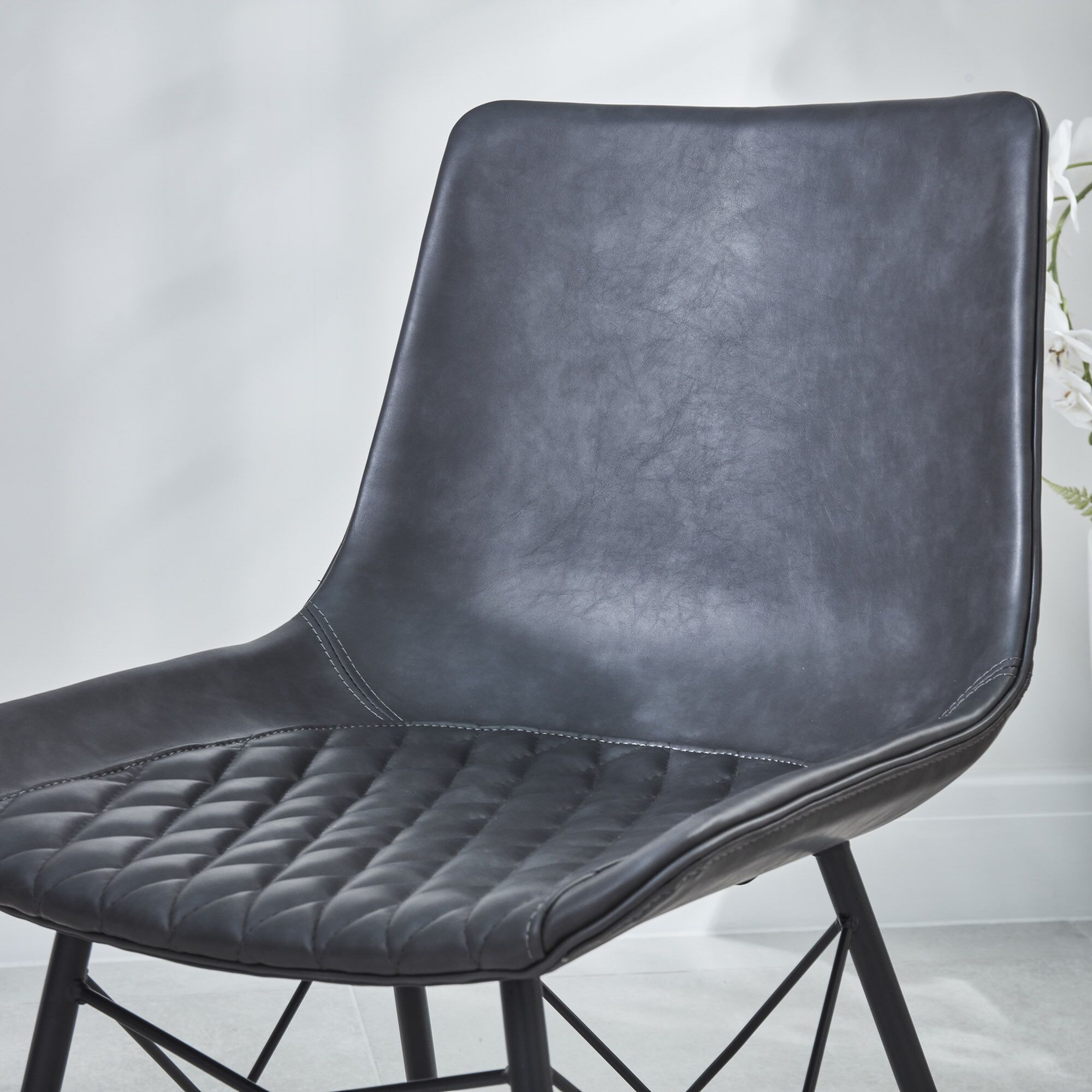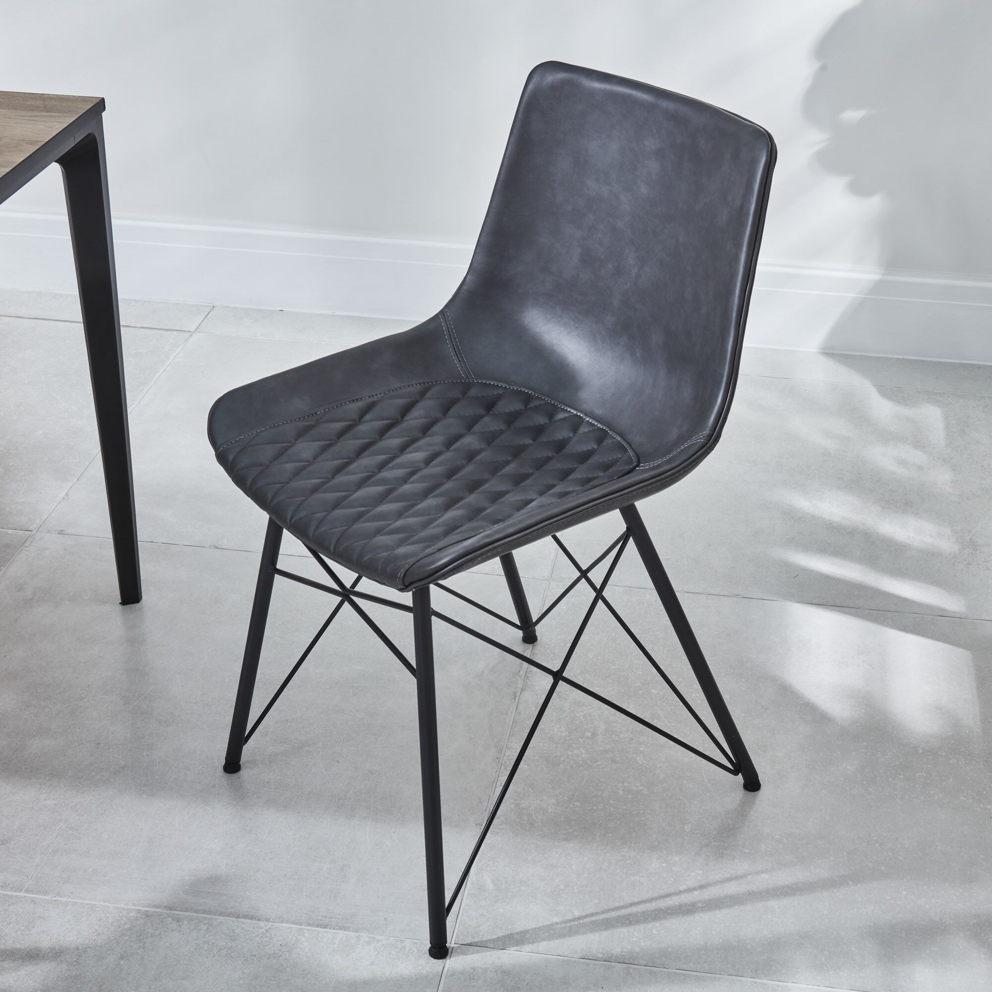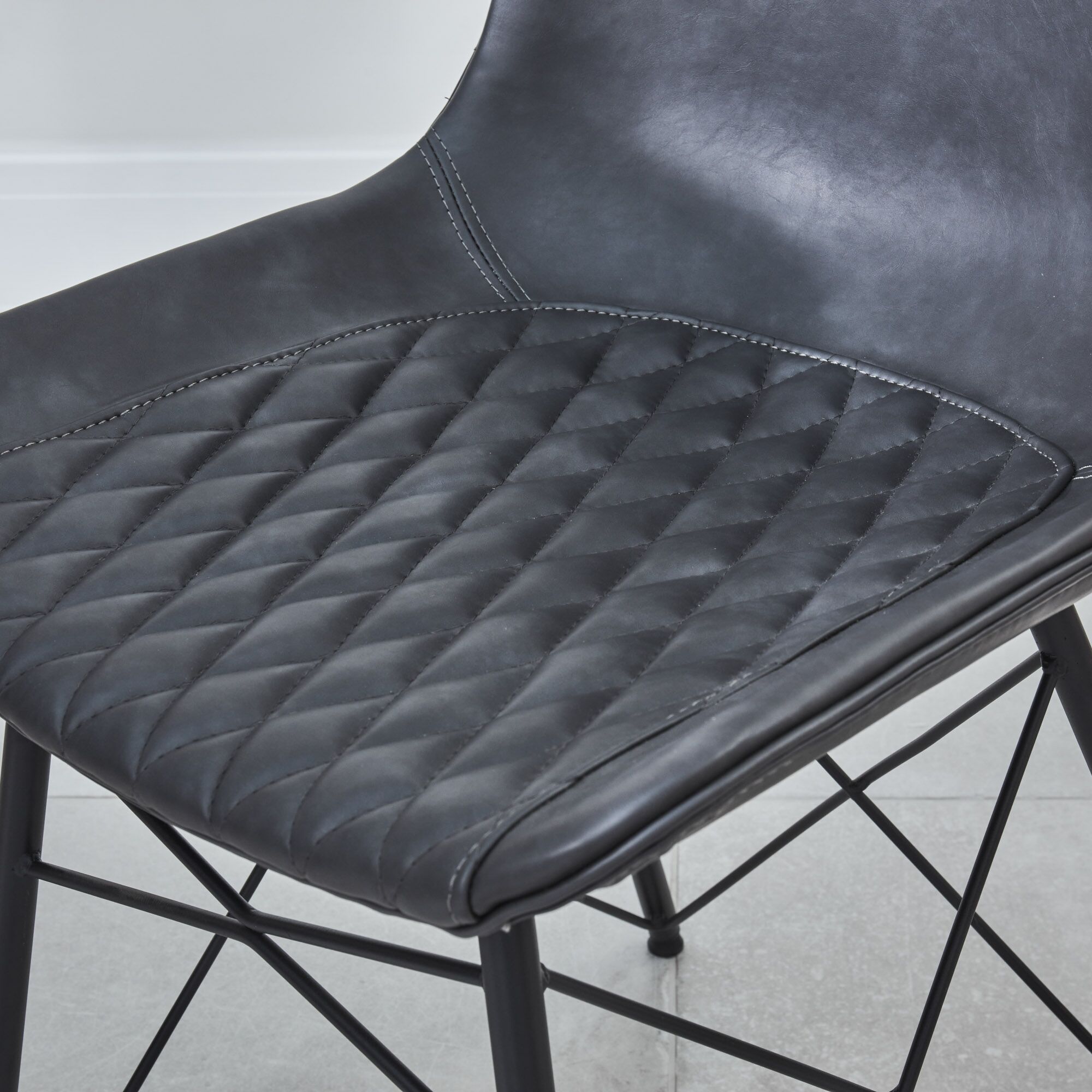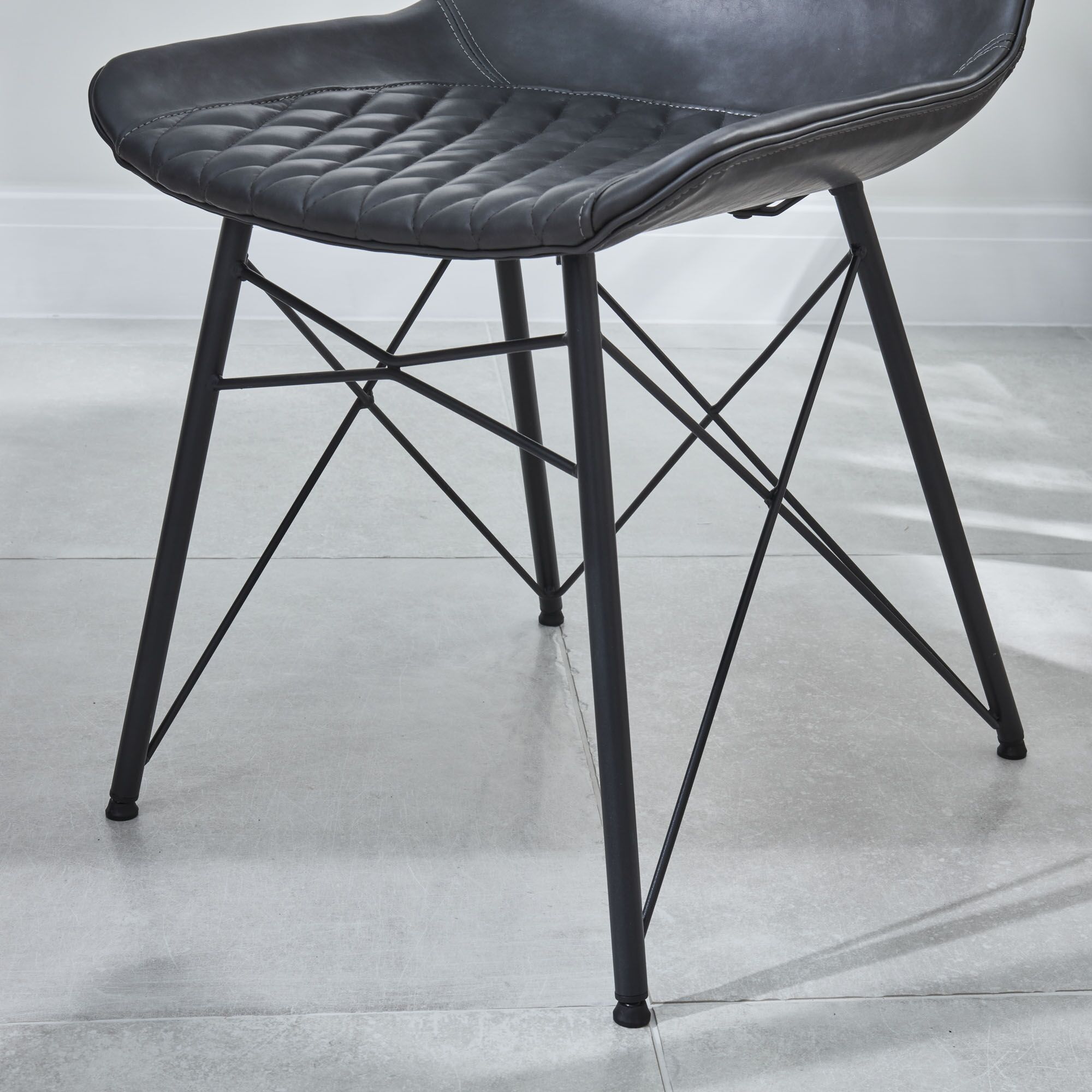 (Set of 2) Leon Grey Faux Leather Quilted Dining Chairs