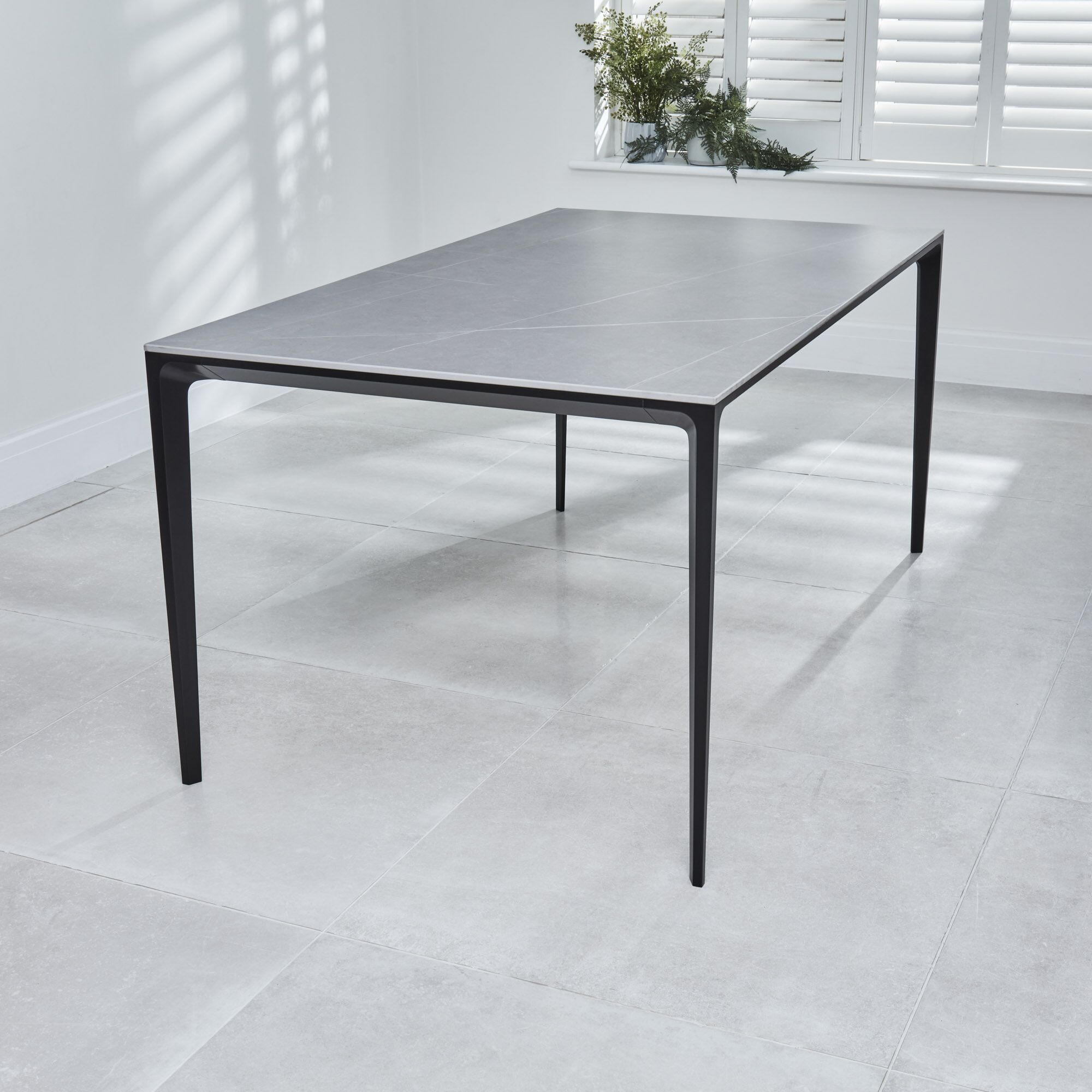 Bellagio 160cm Grey Sintered Stone Dining Table with Black Contemporary Base