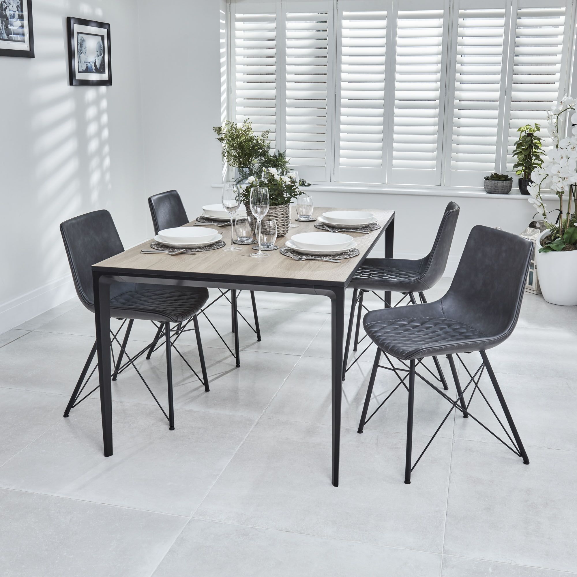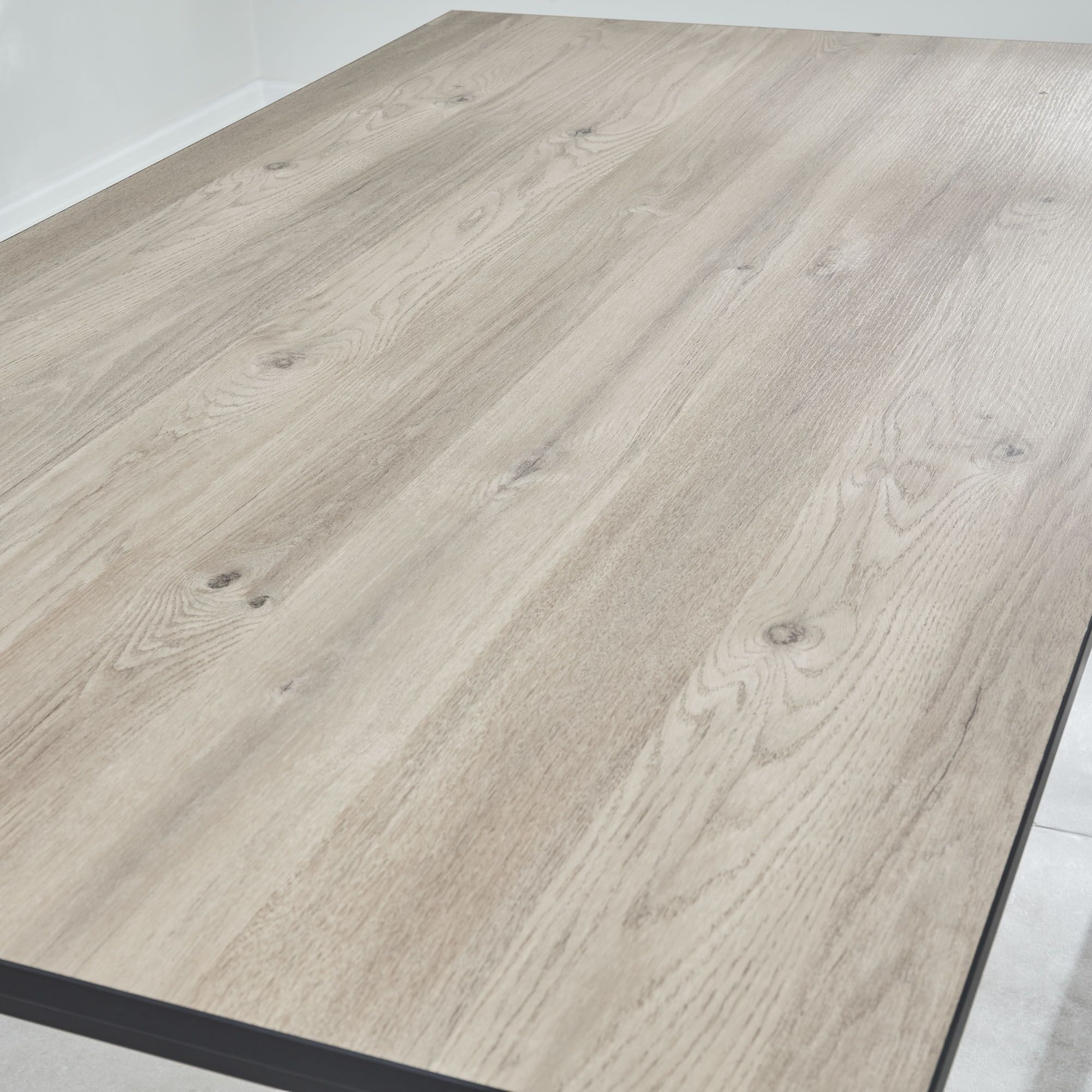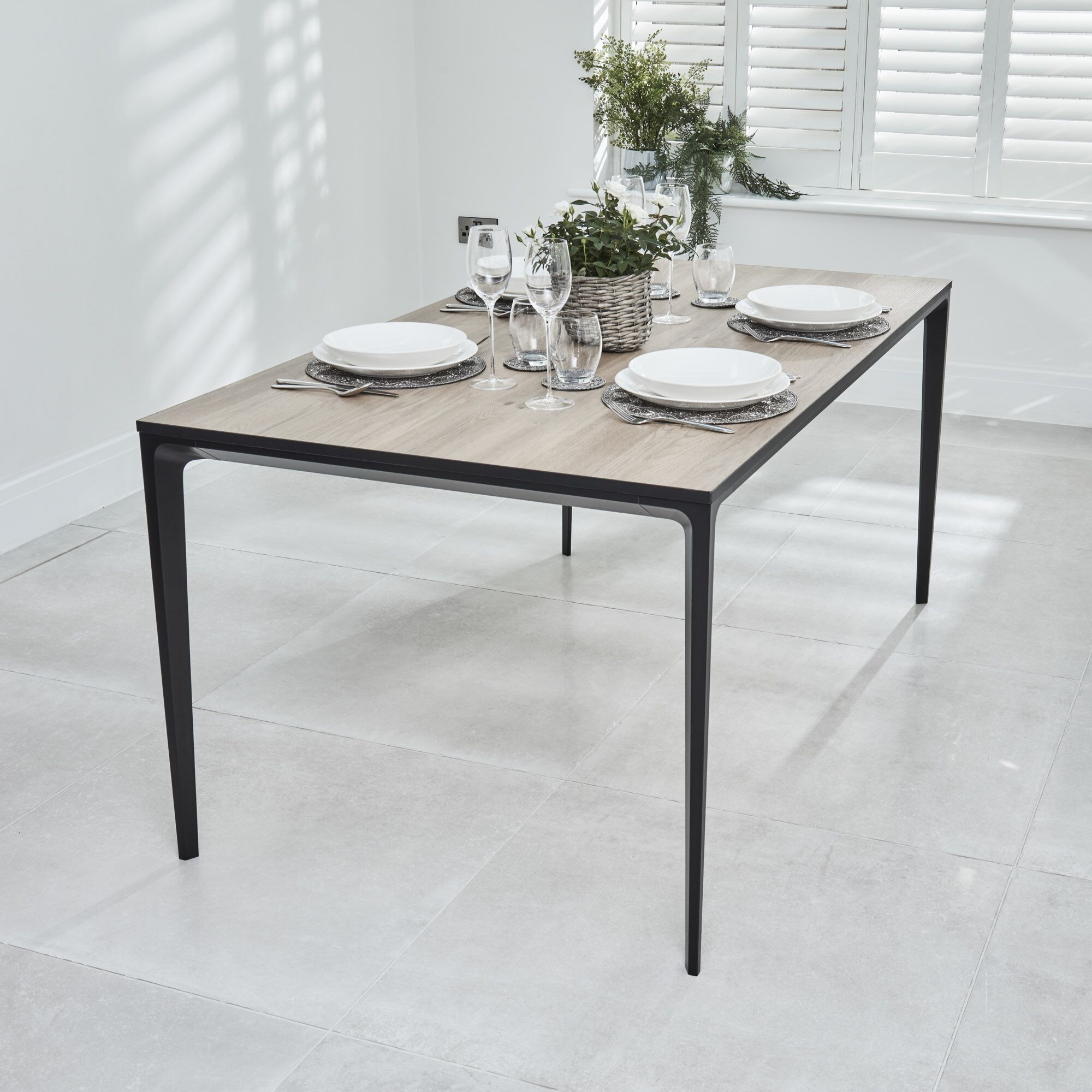 Bellagio 160cm Natural Oak Melamine Dining Table with Black Contemporary Base