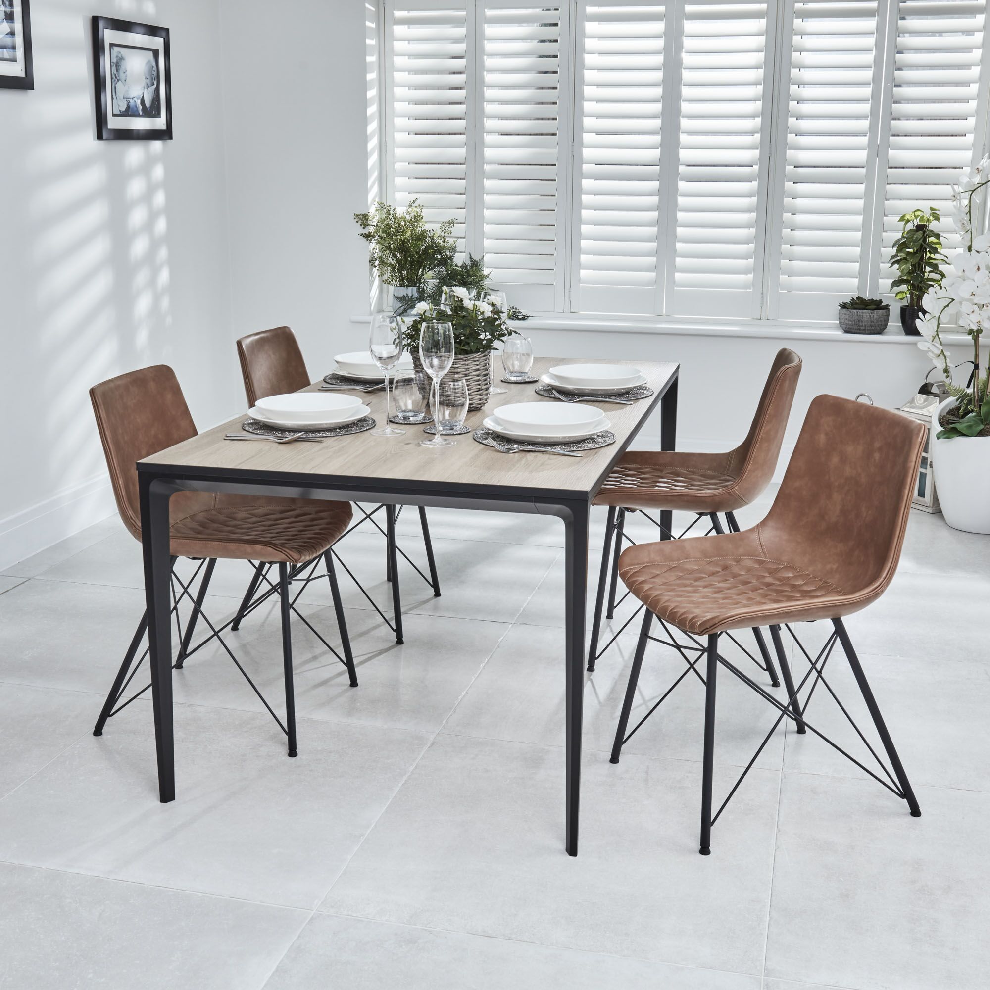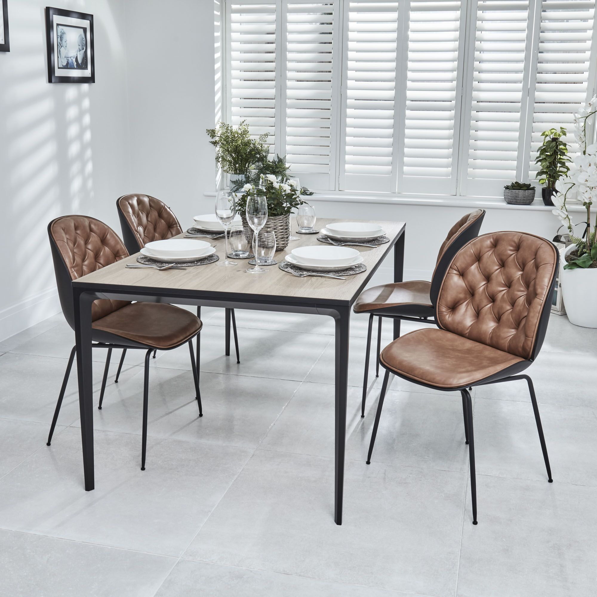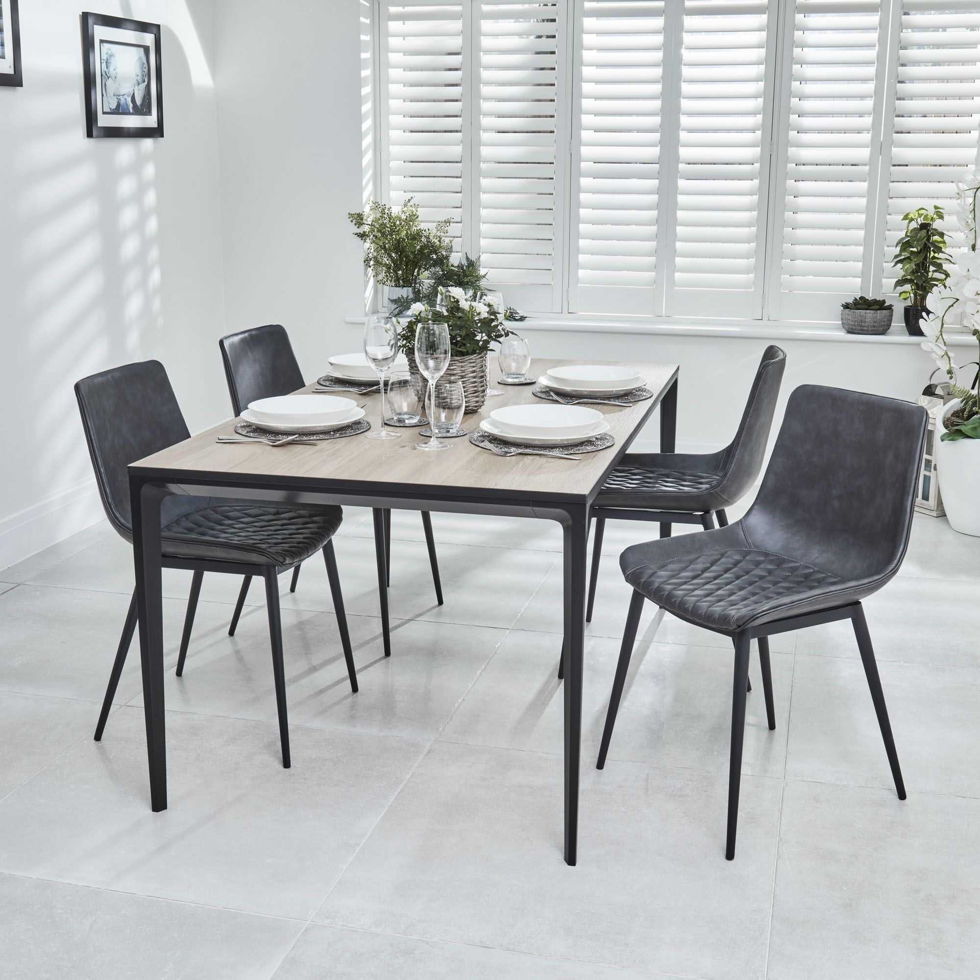 Bellagio 160cm Natural Oak Melamine Dining Table with Black Contemporary Base