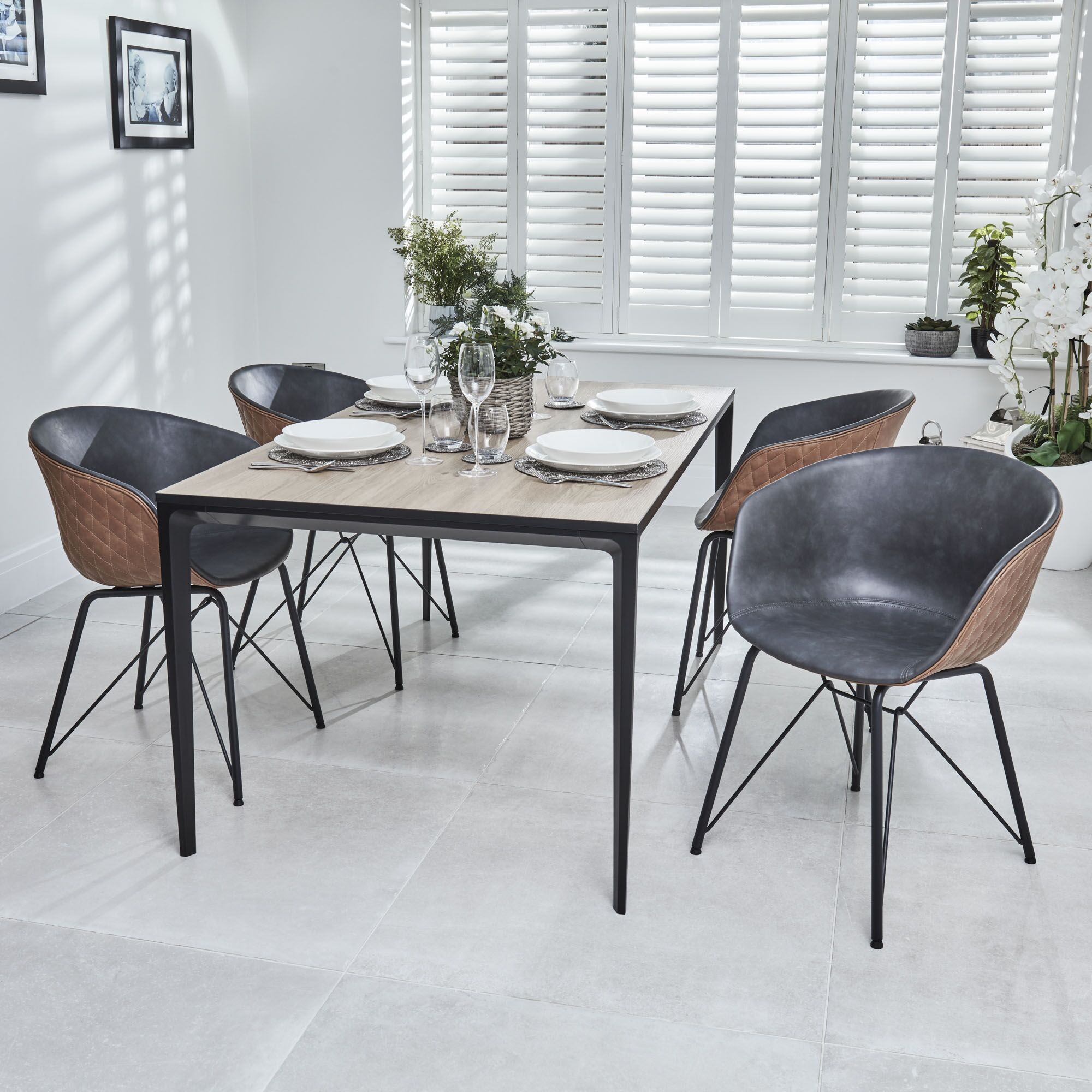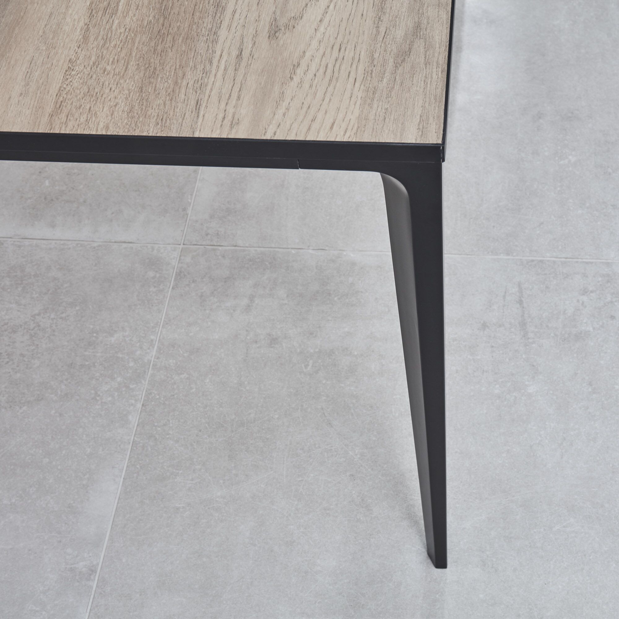 Its sleek shaped base which is finished in satin black painted steel. Showcasing a Natural Oak Melamine top which is scratch and heat resistant, also two sided.