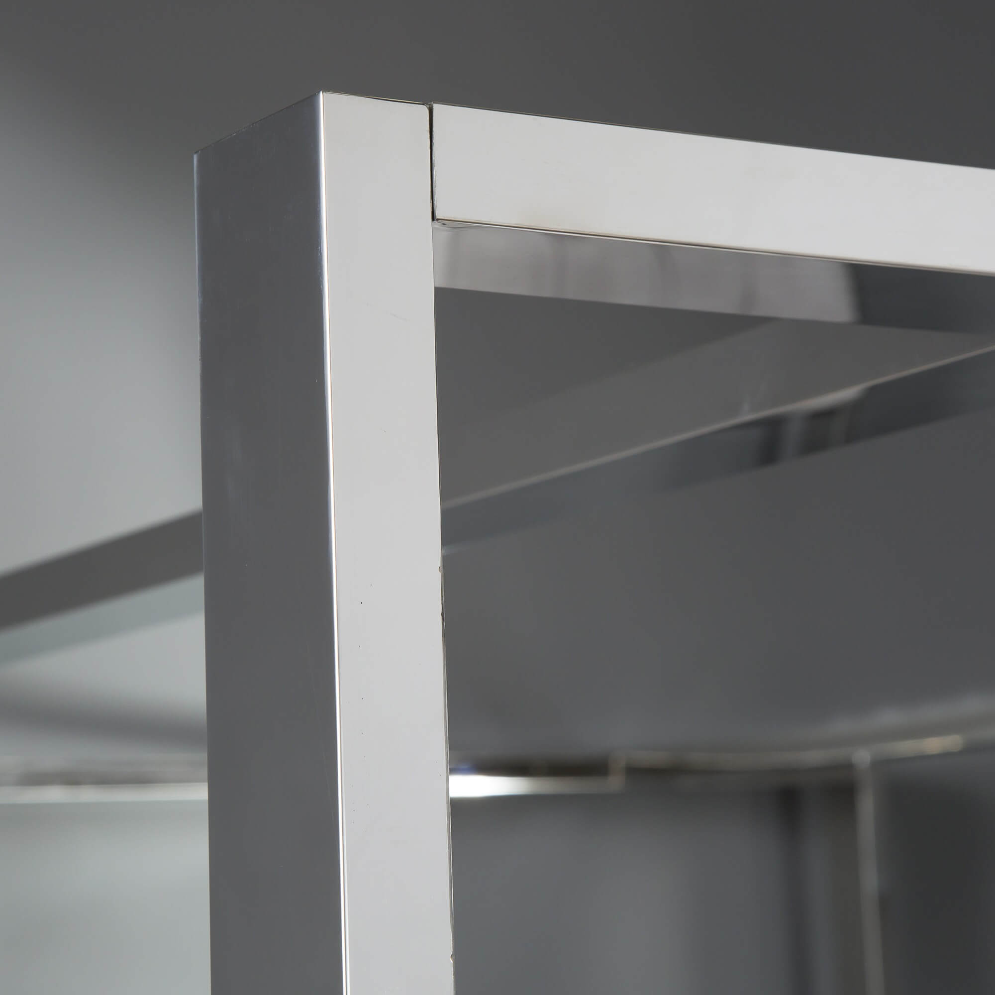 This stunning four poster bed features tall polished silver chrome posts paired with a luxurious deep-buttoned brushed velvet headboard, combining striking design with exceptional comfort. The contrast between the sleek polished steel frame and the soft velvet upholstery creates a sophisticated focal point, bringing a true sense of luxury to your bedroom.