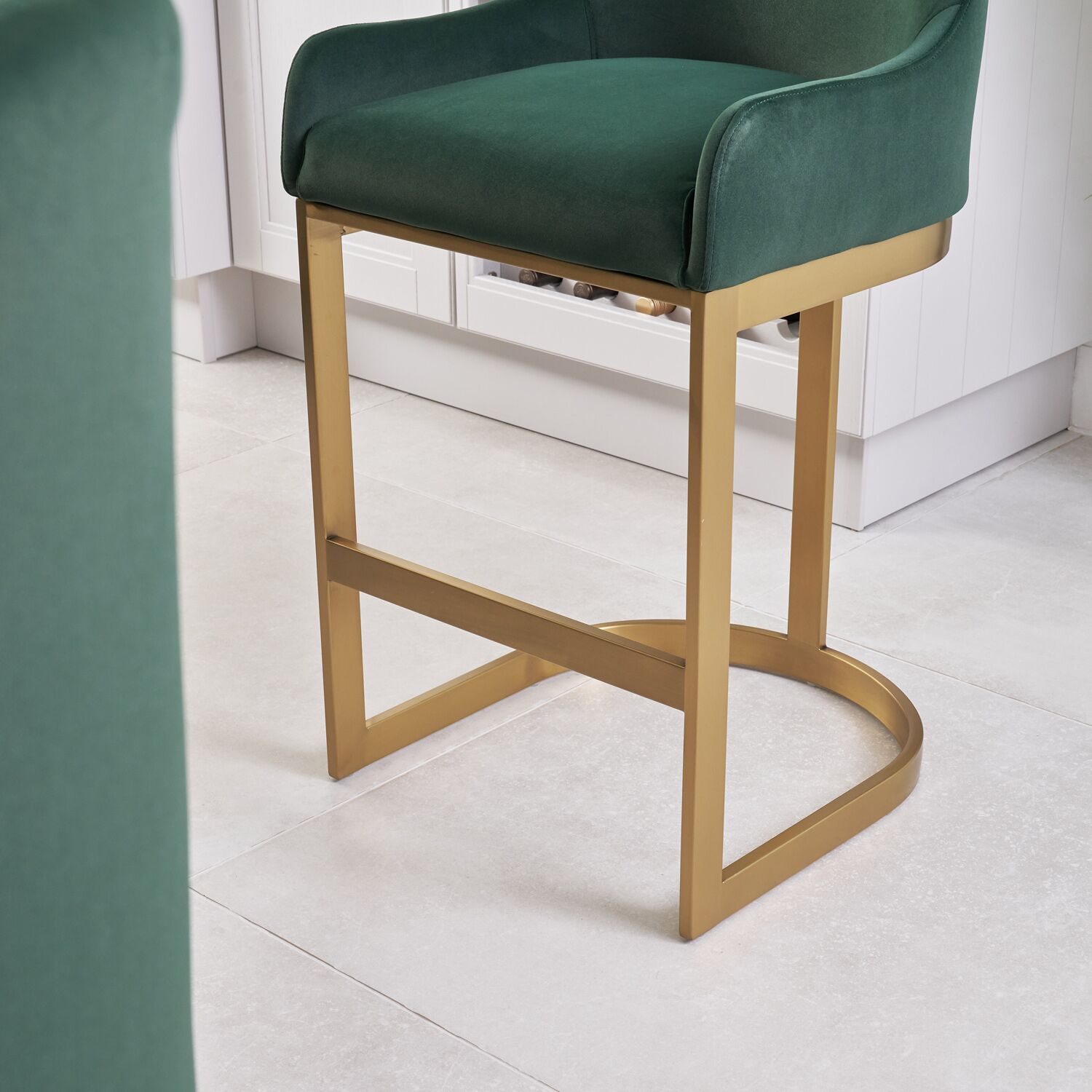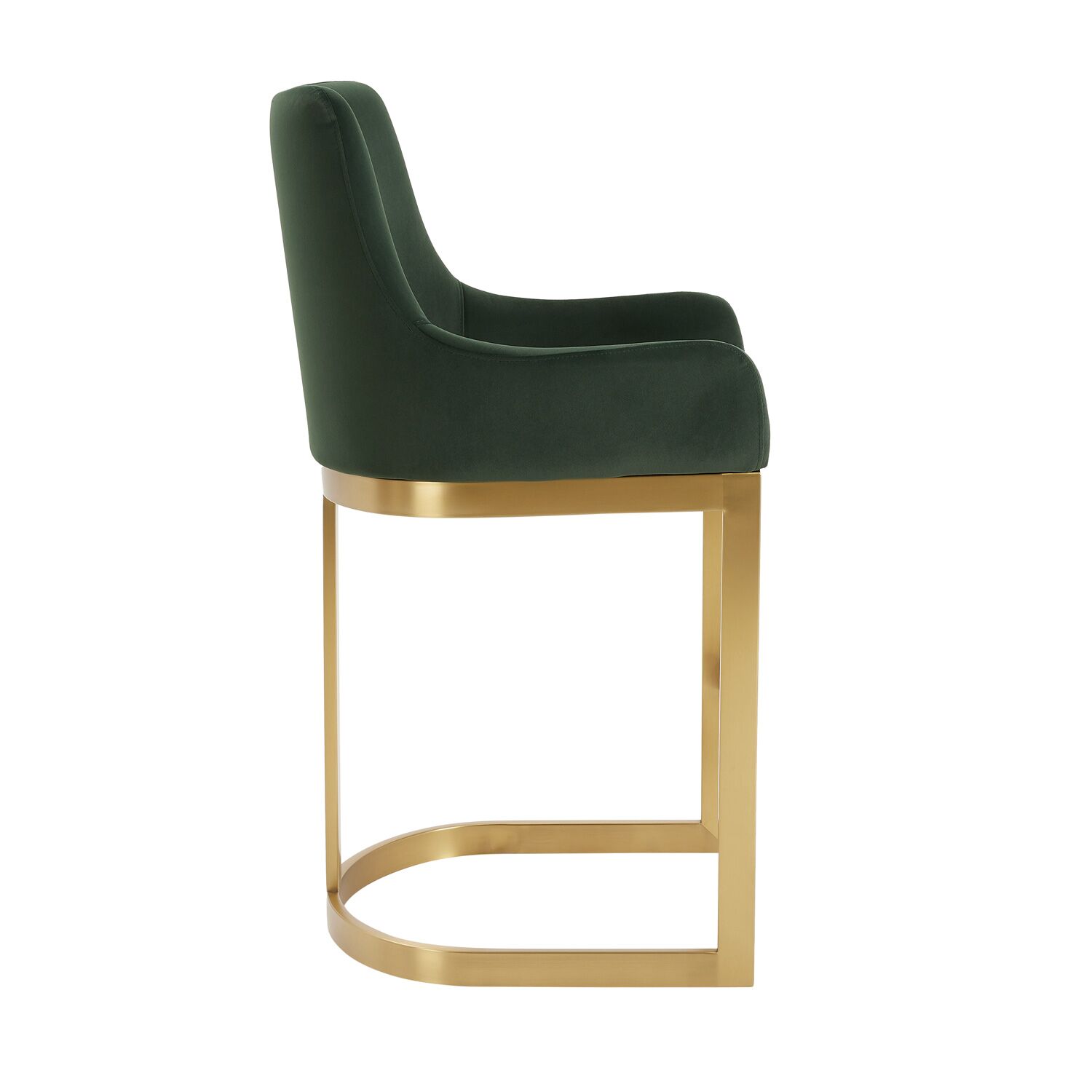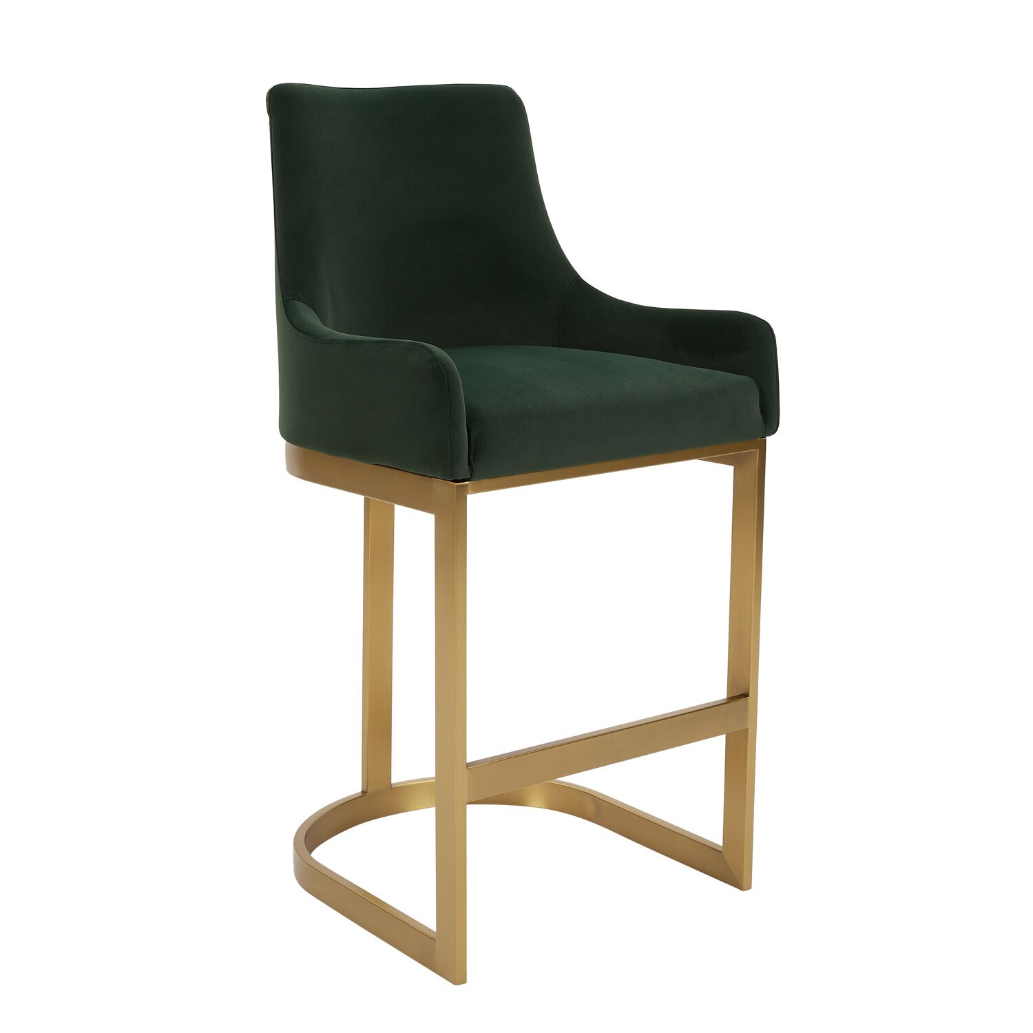 Clara Green Velvet Upholstered Counter Kitchen Stool with Gold Steel Frame