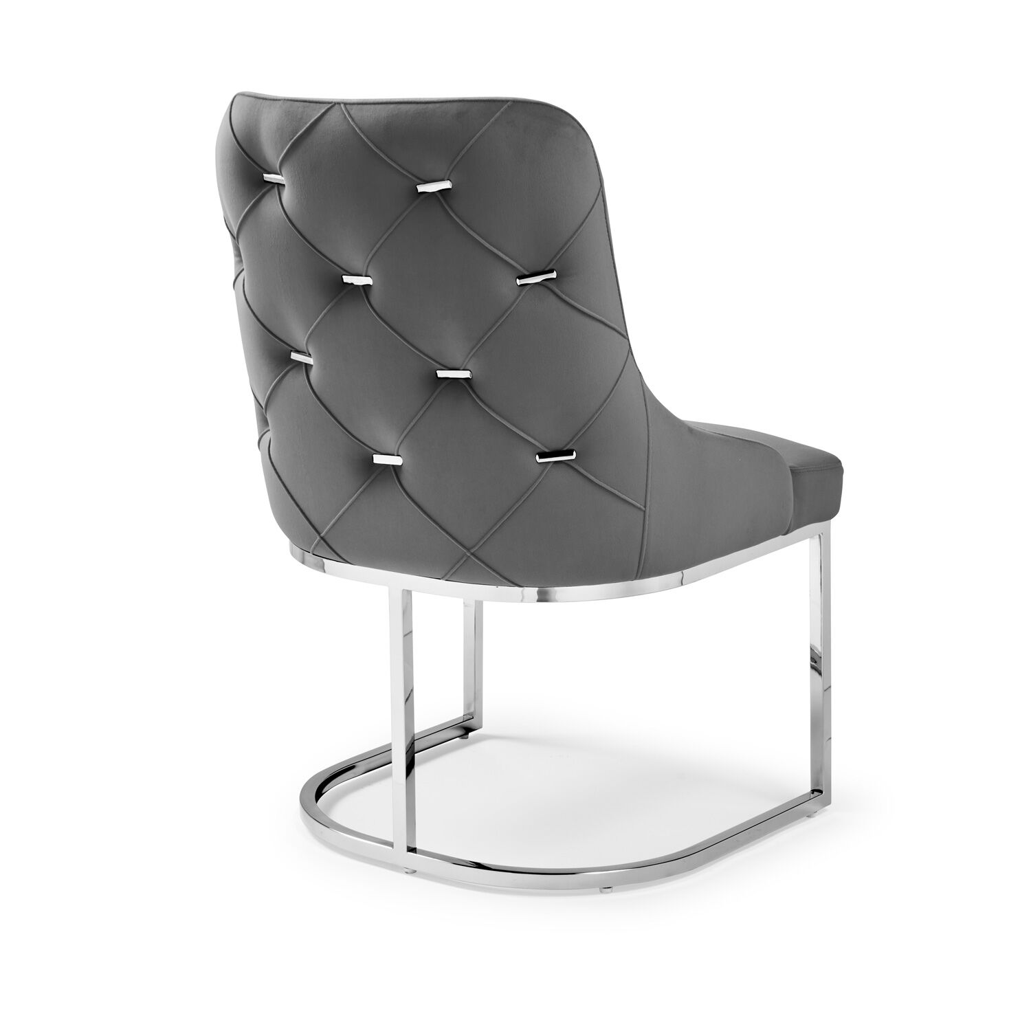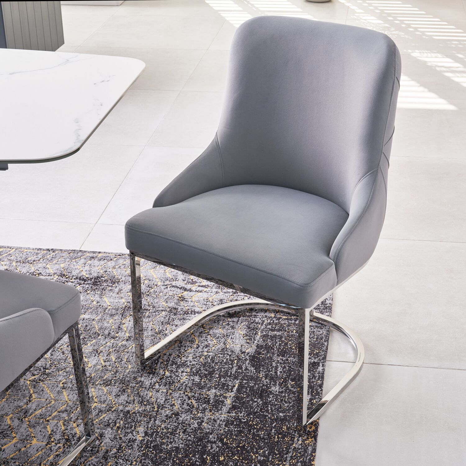 Clara Grey Brushed Velvet Upholstered Dining Chair – Polished Stainless Steel Base