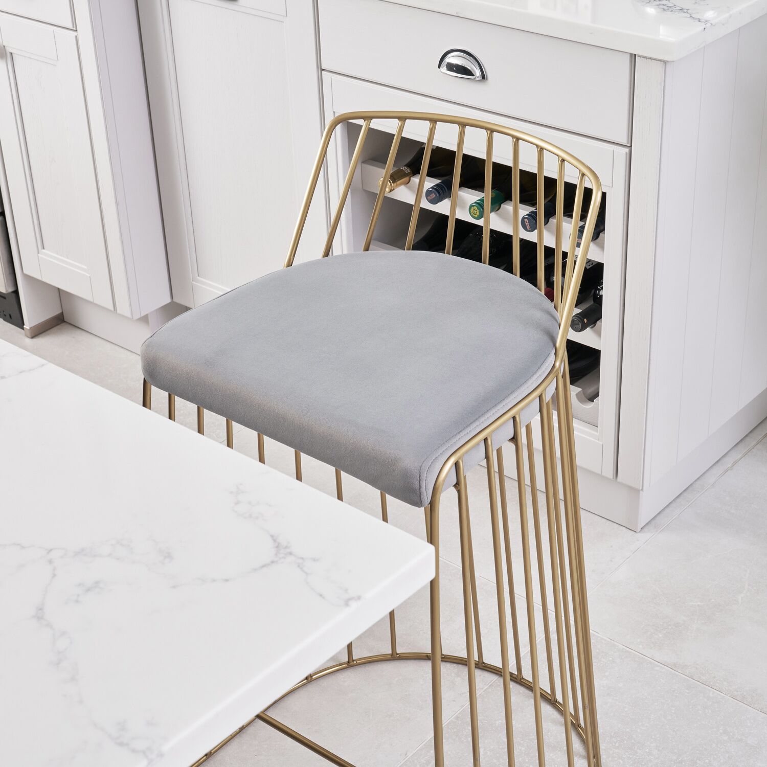 Claudia Grey Velvet Kitchen Barstool With a Gold Solid Frame