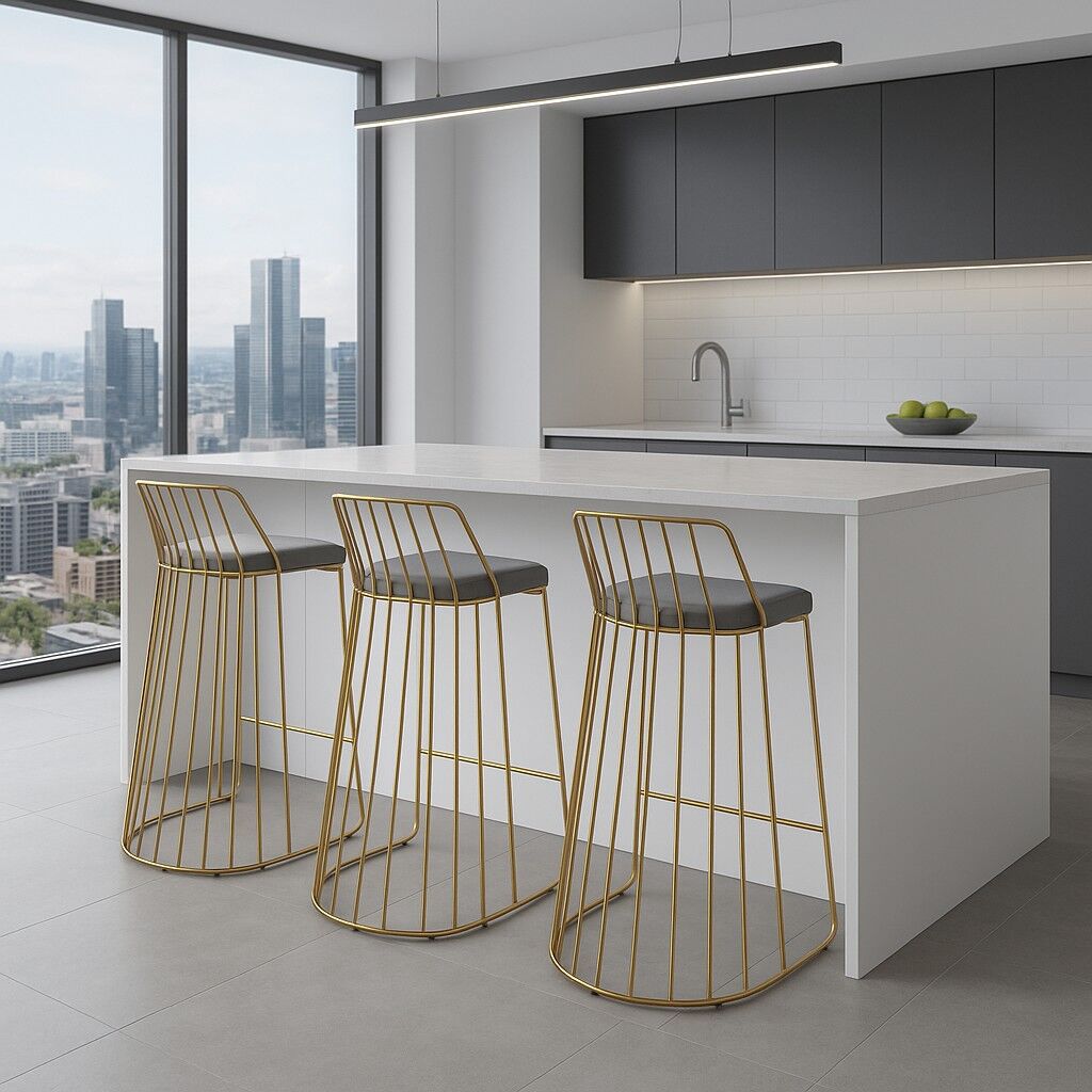 This Claudia bar stool is made of a golden matt finish, optimum comfort with a tubular backrest design. Exquisite craftsmanship, the tubular poles are specially treated, seamlessly welded and the formation of the legs are integrally formed. The grey velvet cushion for this bar stool has a deep padded seat.