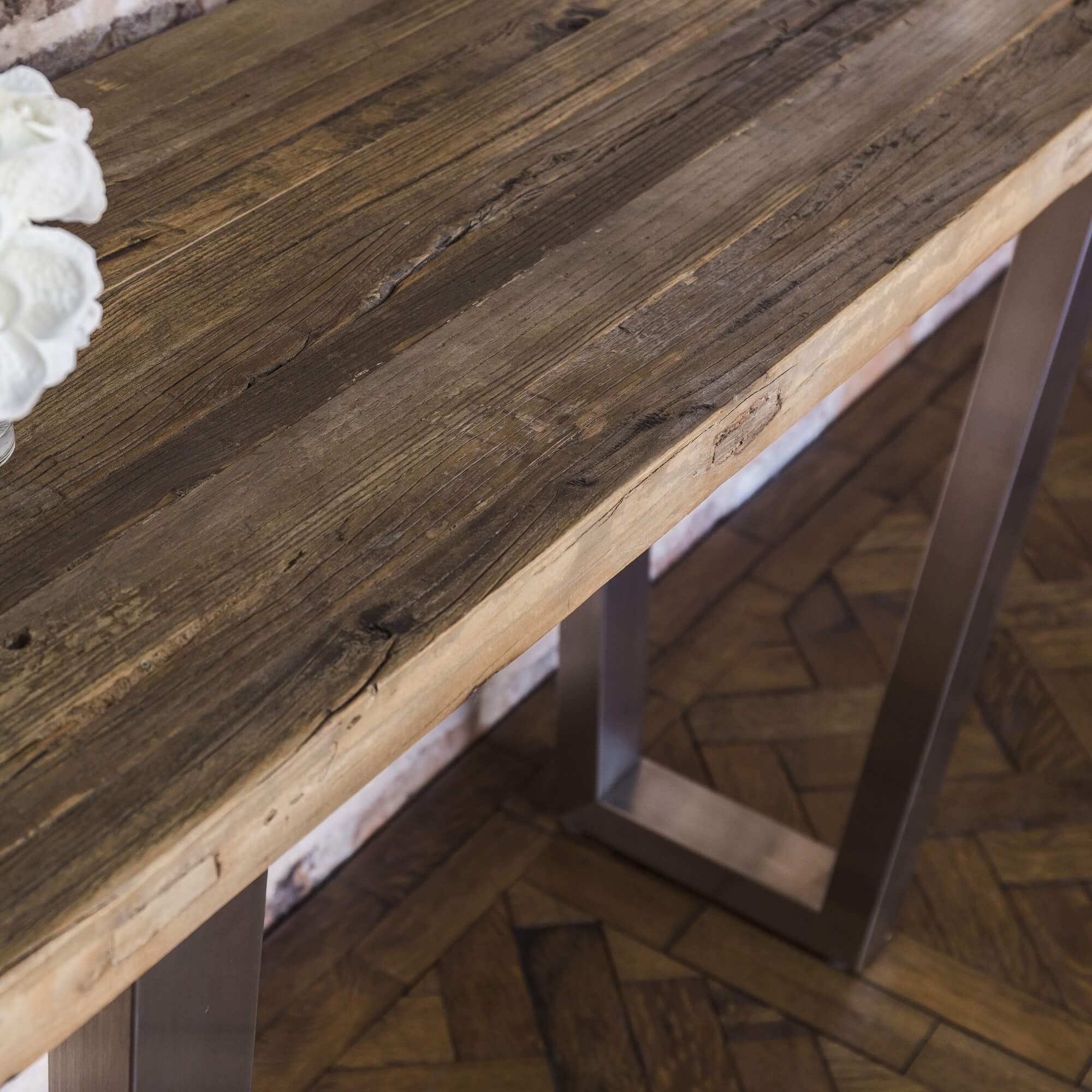 Detroit Brushed Steel & Reclaimed Elm Console Table