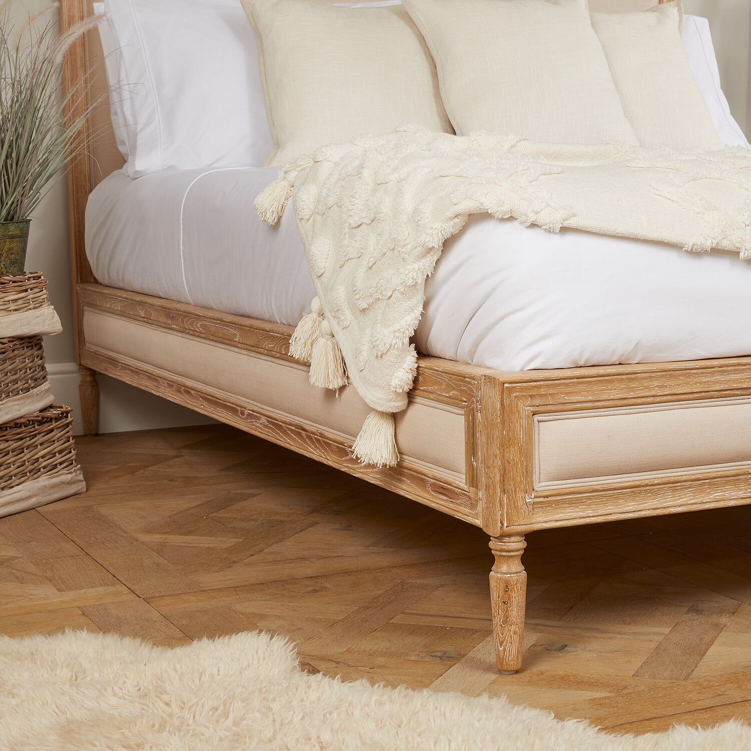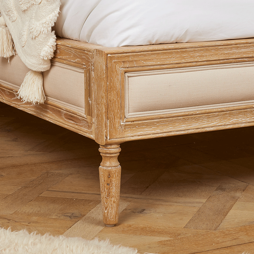 French Whitewash Oak Upholstered Low Foot Board Bed – King