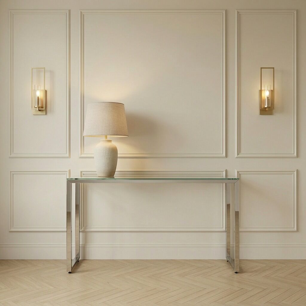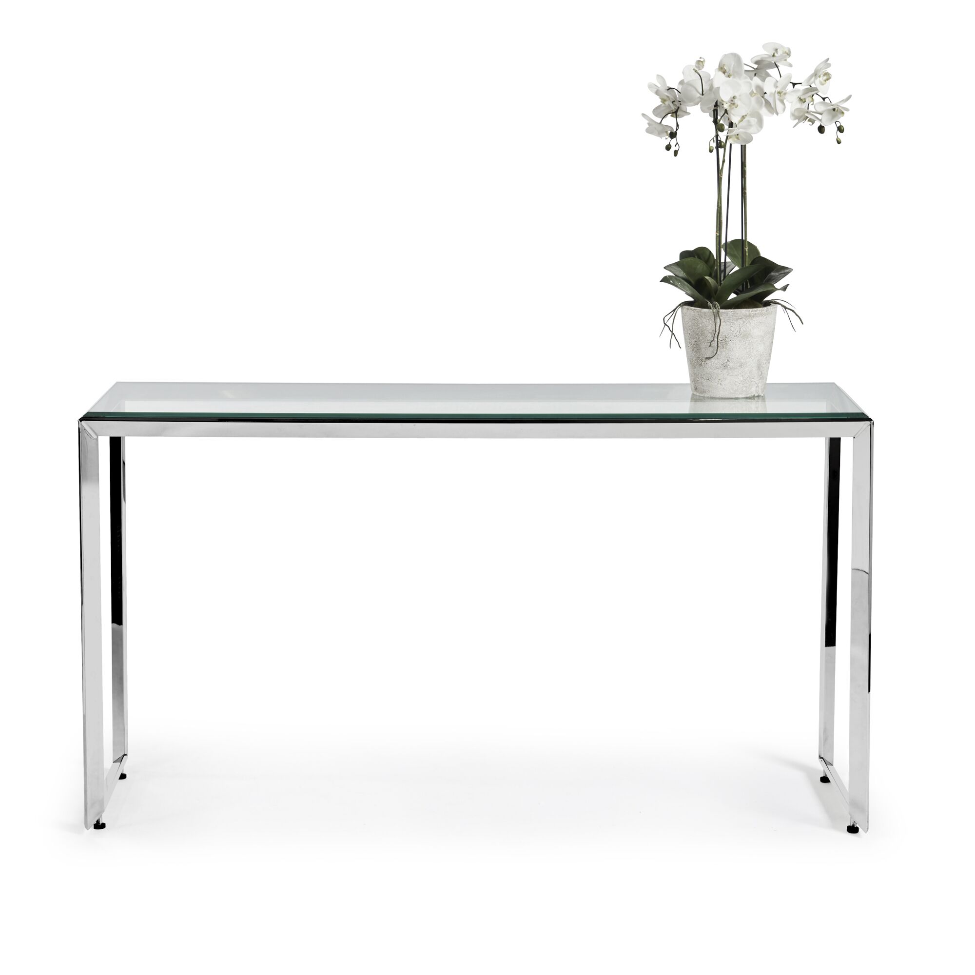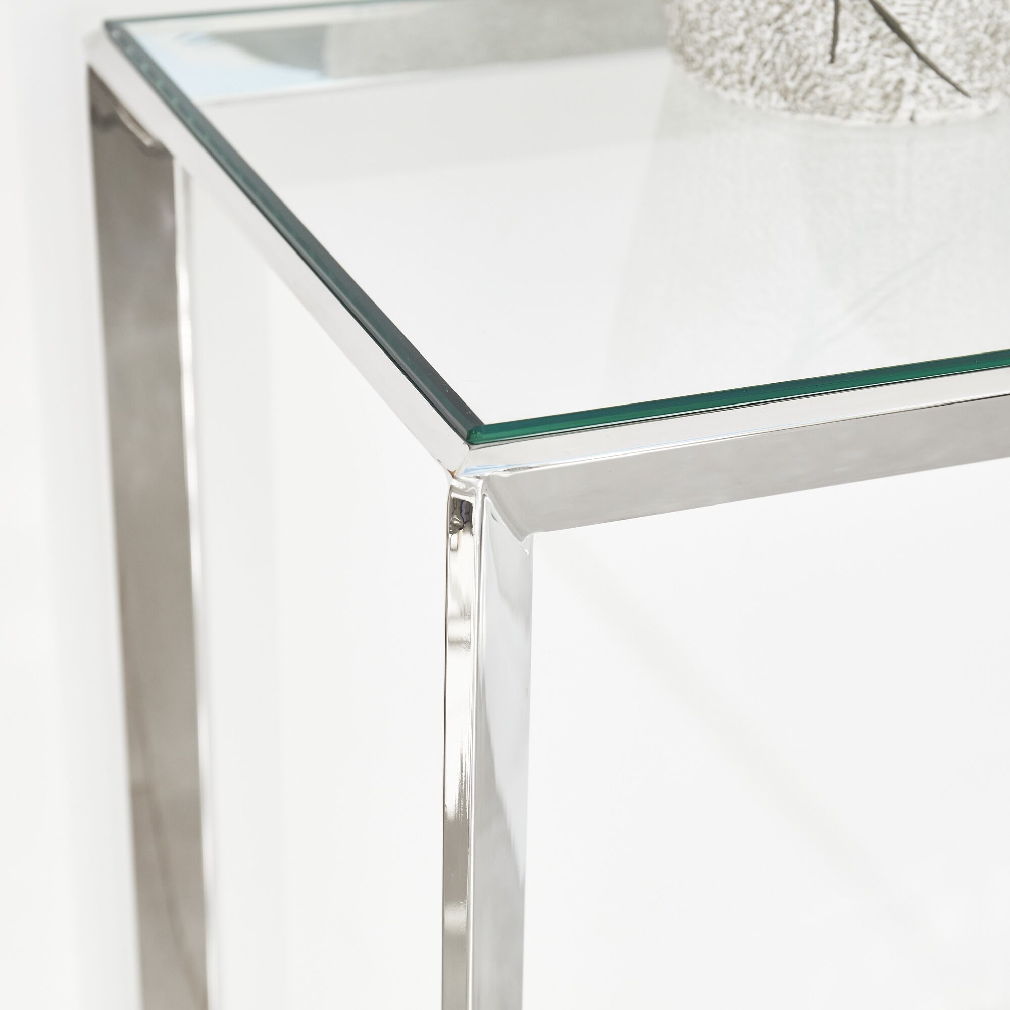 Small Glass Console Table With Polished Stainless Steel