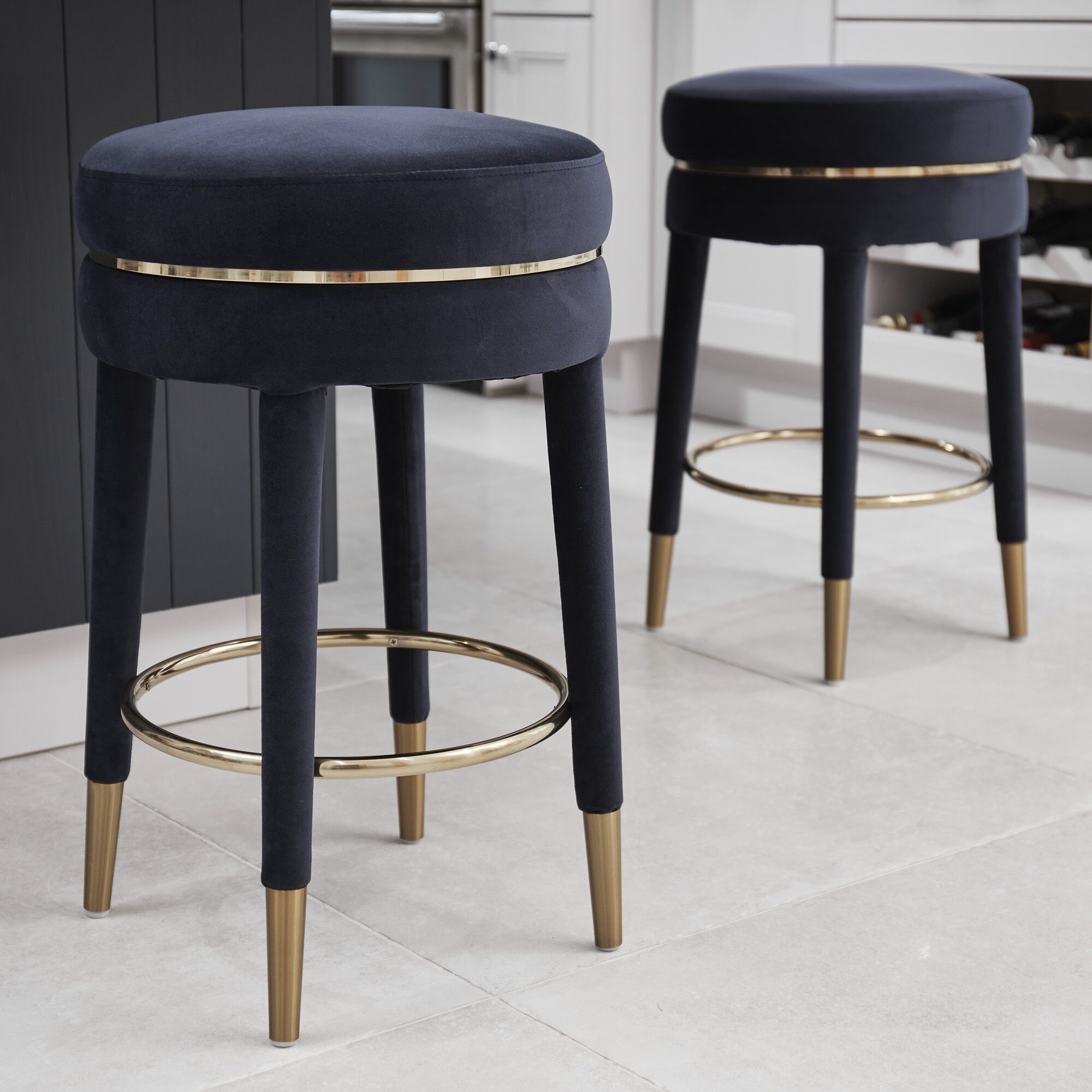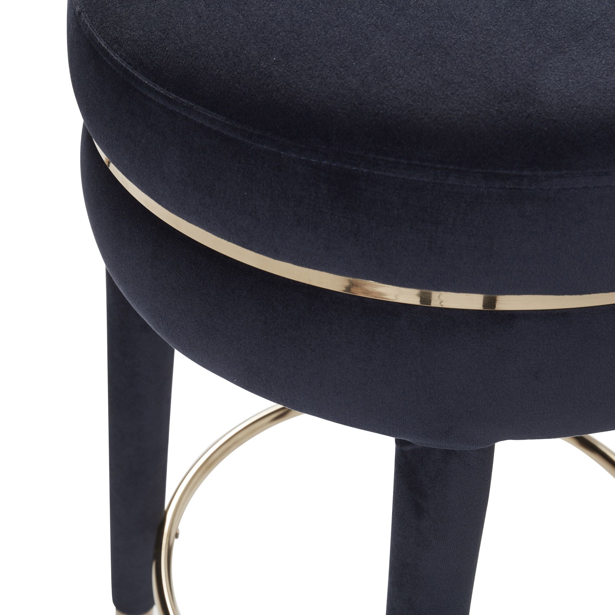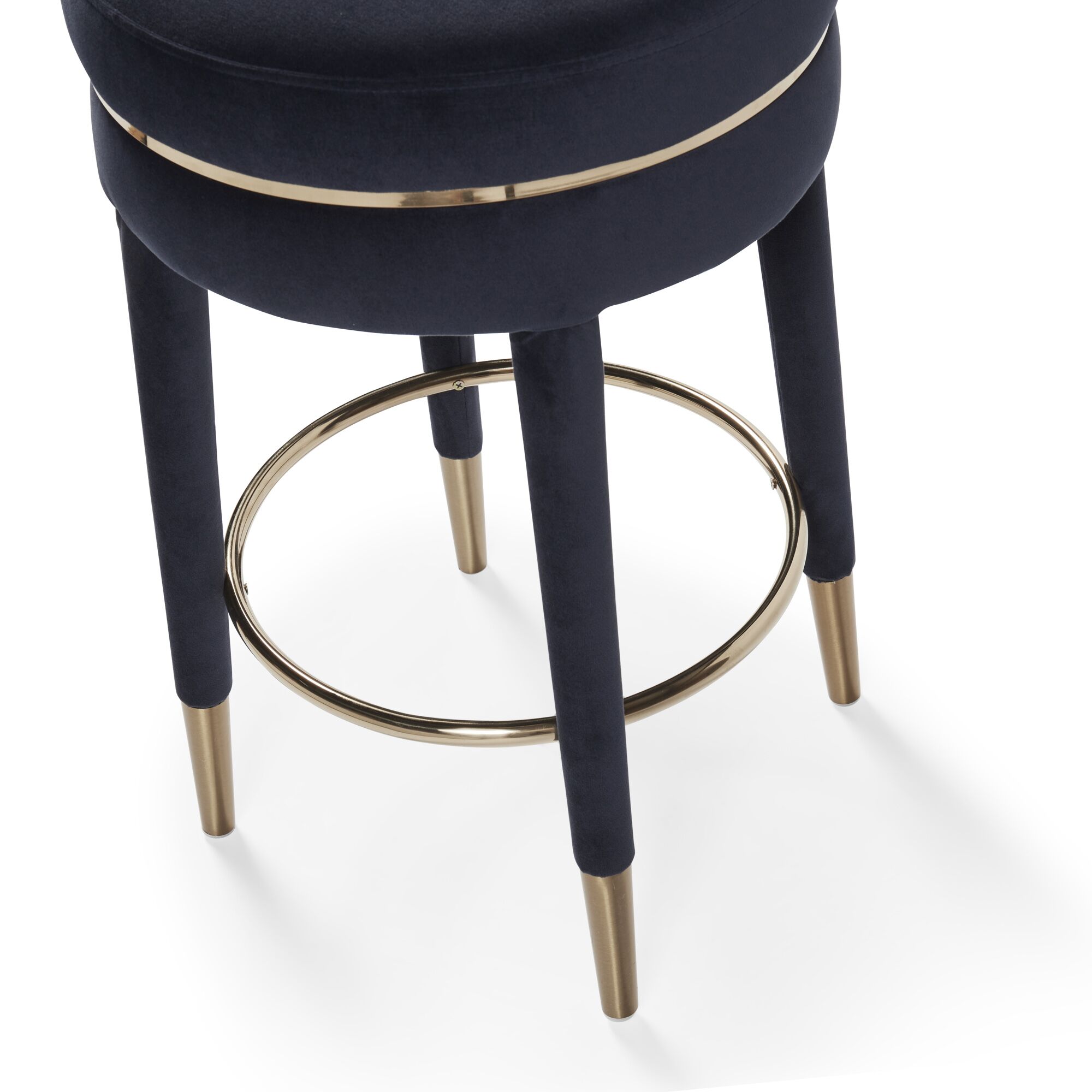 Isabel Dark Blue Velvet Counter Bar Stool with Gold Trim Footrest