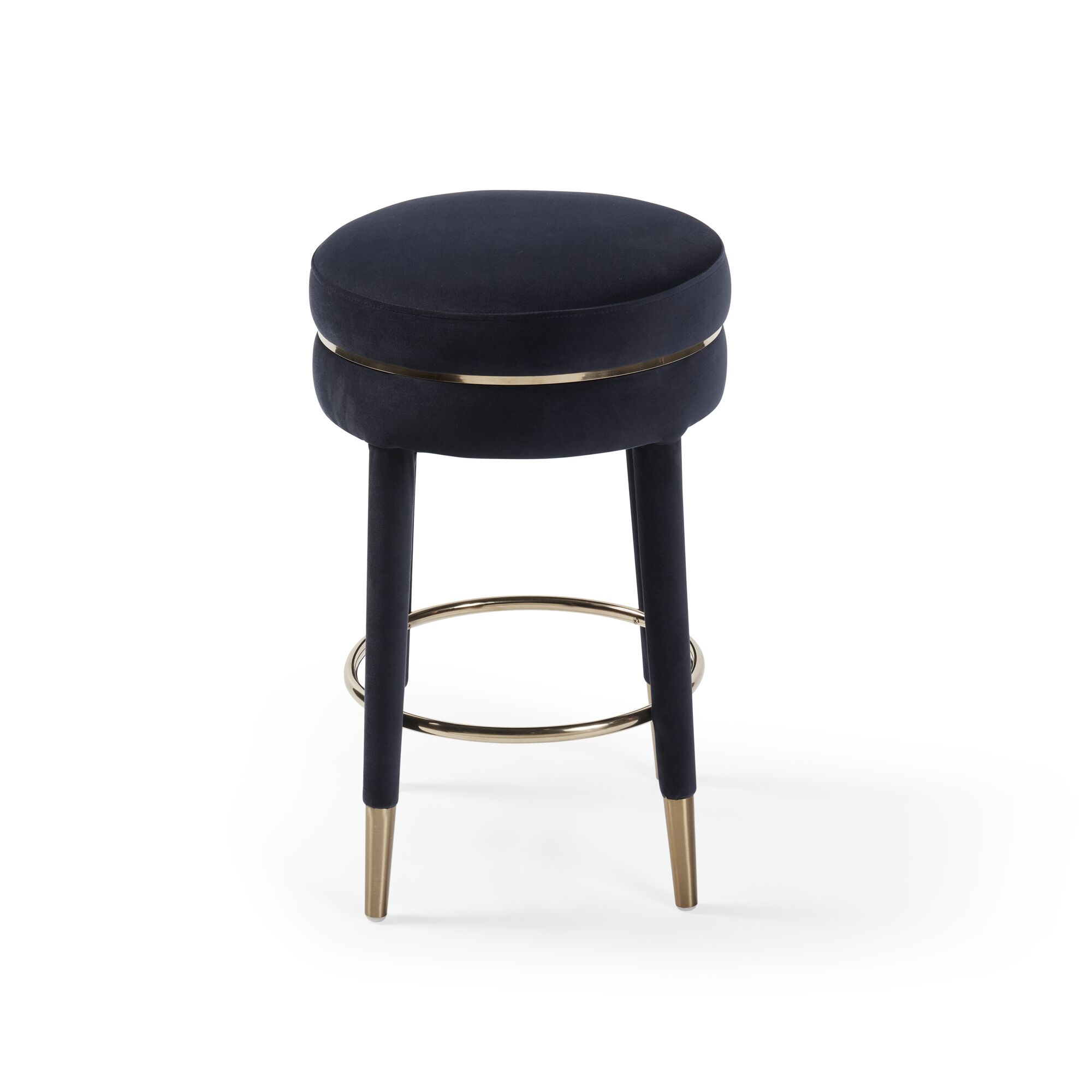 This Isabel circular velvet Bar stool is simply a sure eye catcher, show casing upholstered tapered four legs with a gold foot rest.