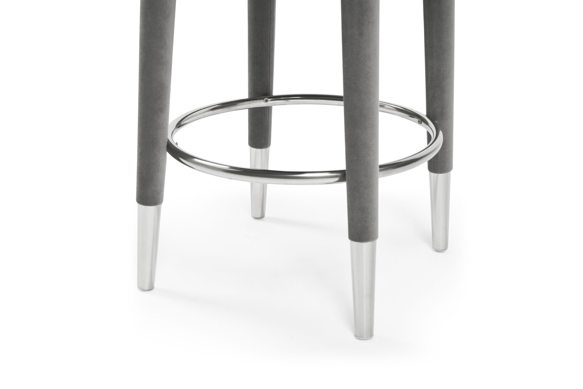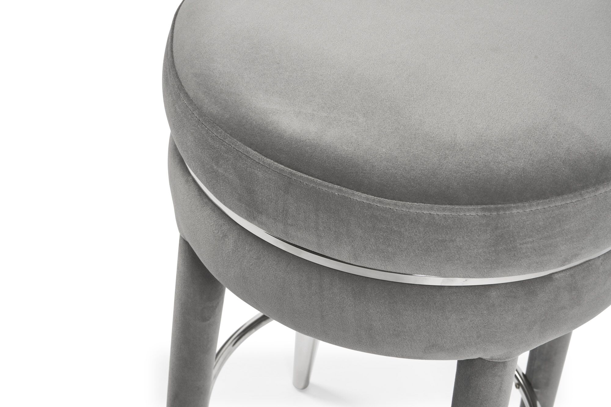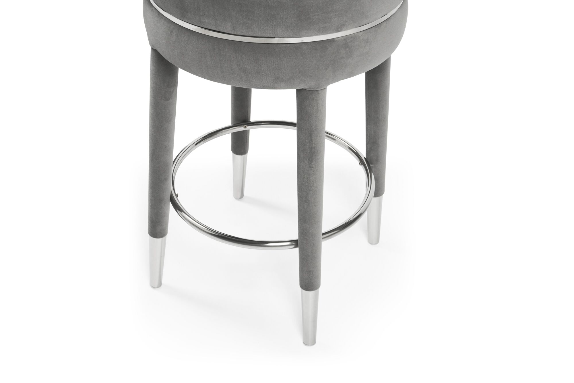 Isabel Grey Velvet Bar Stool with Stainless Steel Trim Footrest