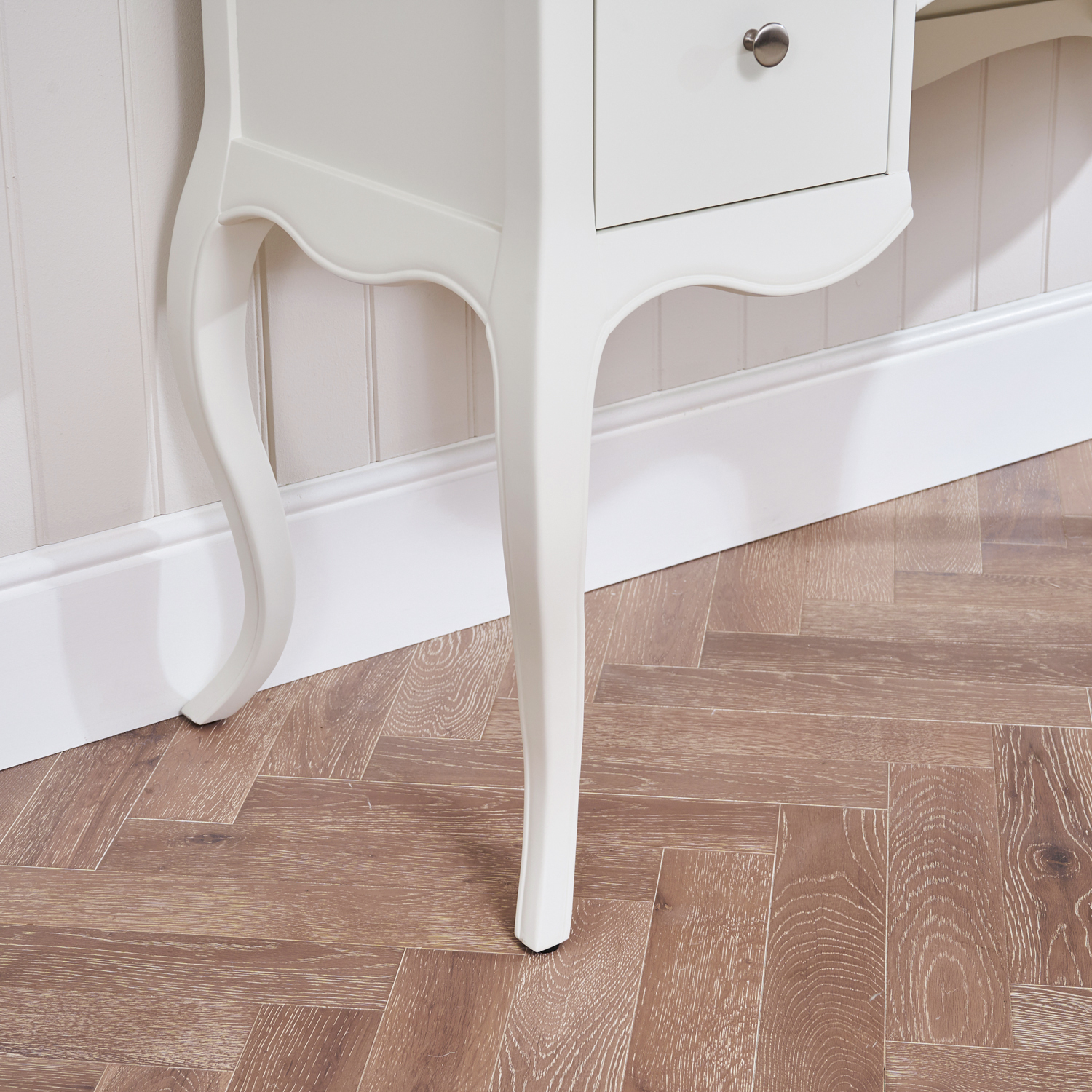 This traditional French Painted Chalk White Dressing Table Set combines elegance and functionality, complete with a matching dressing table stool. Its timeless design and sophisticated craftsmanship make it the perfect addition to any bedroom.