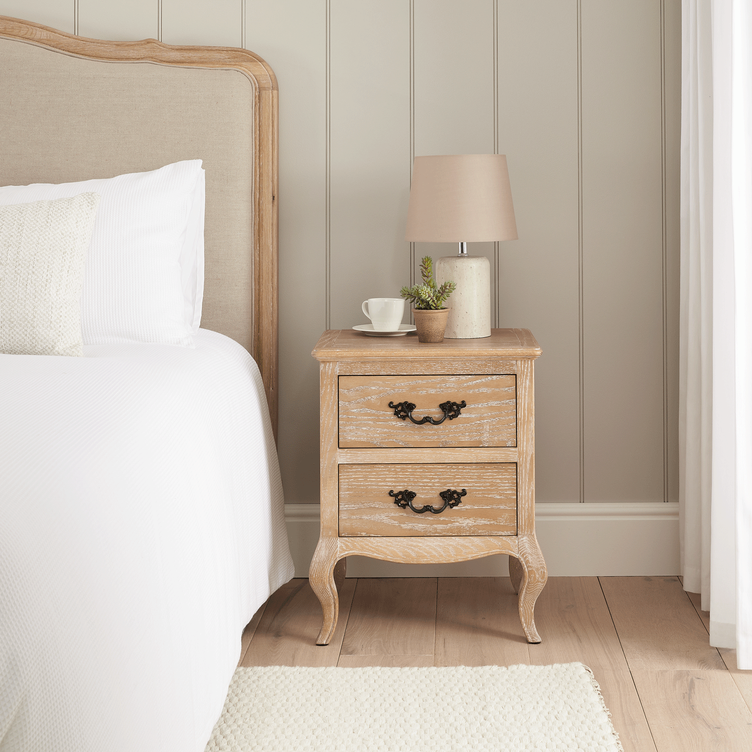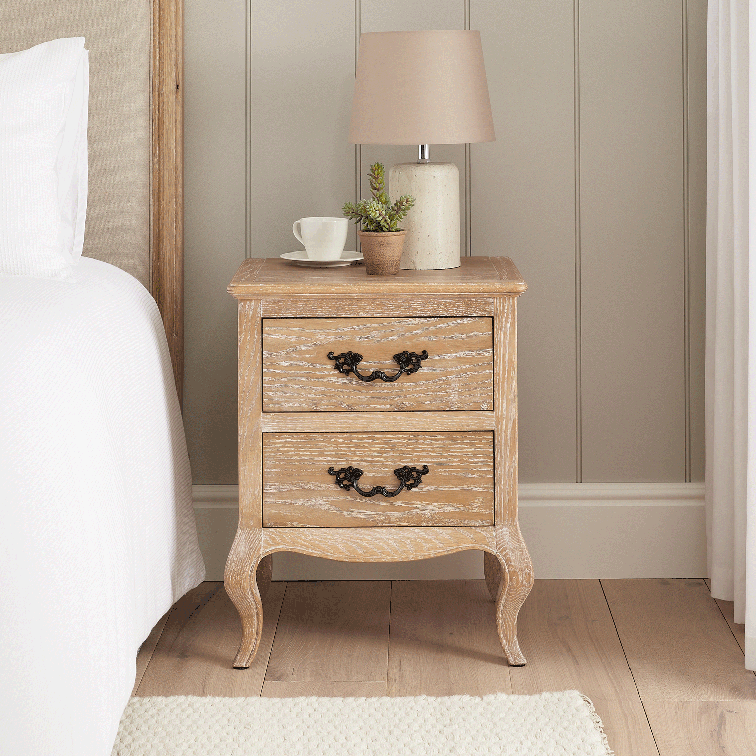Lille French Limed Oak Two Drawer Bedside Table