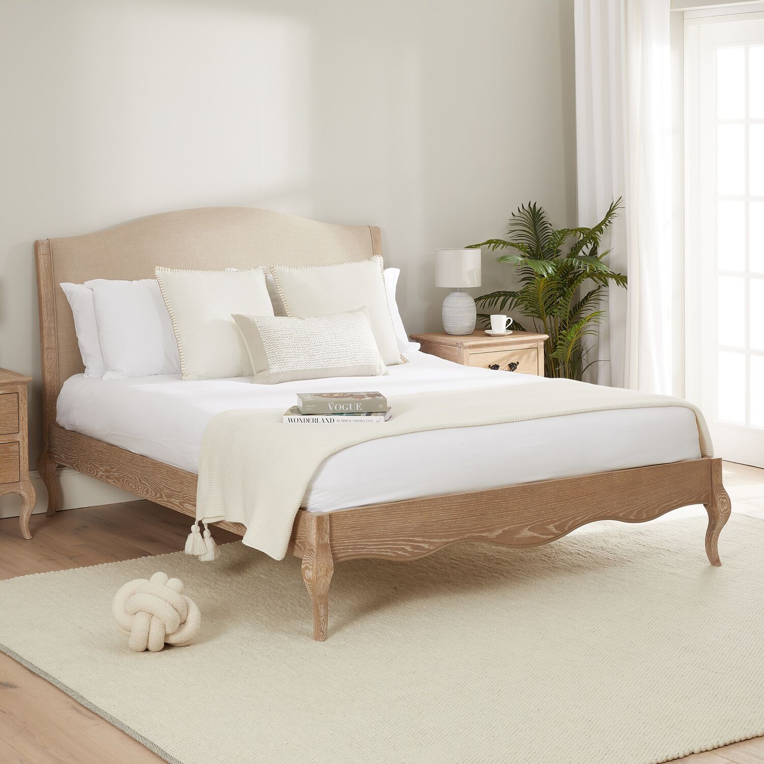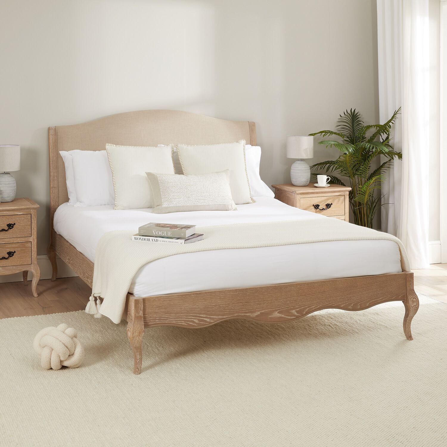 Lille French Limed Oak Upholstered Low Foot Board Bed – Double