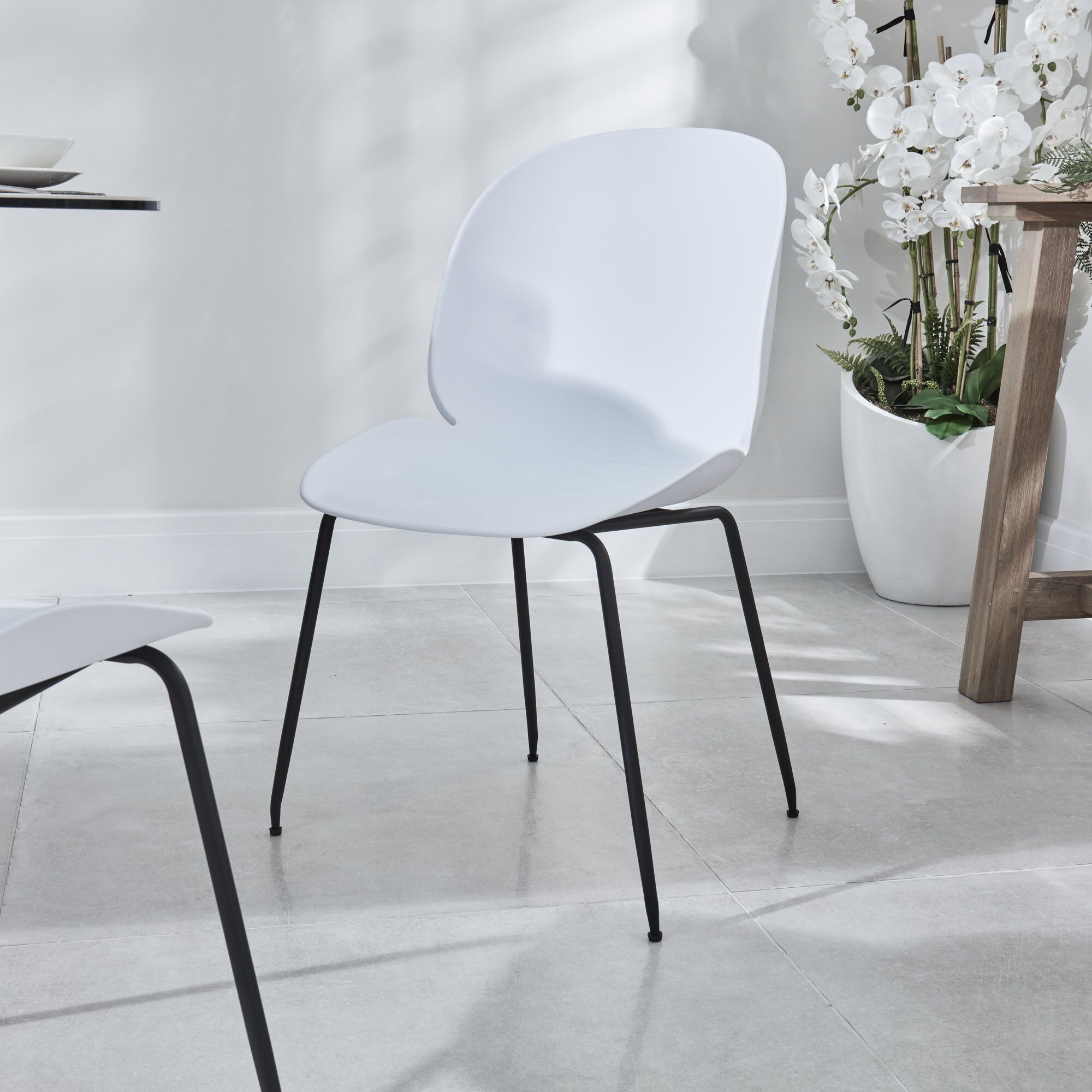 The Casper dining chair is the perfect addition to any modern or contemporary interior. Look no further than our Casper dining chair which are made from moulded plastic with a fixed black Satin powder coated base.