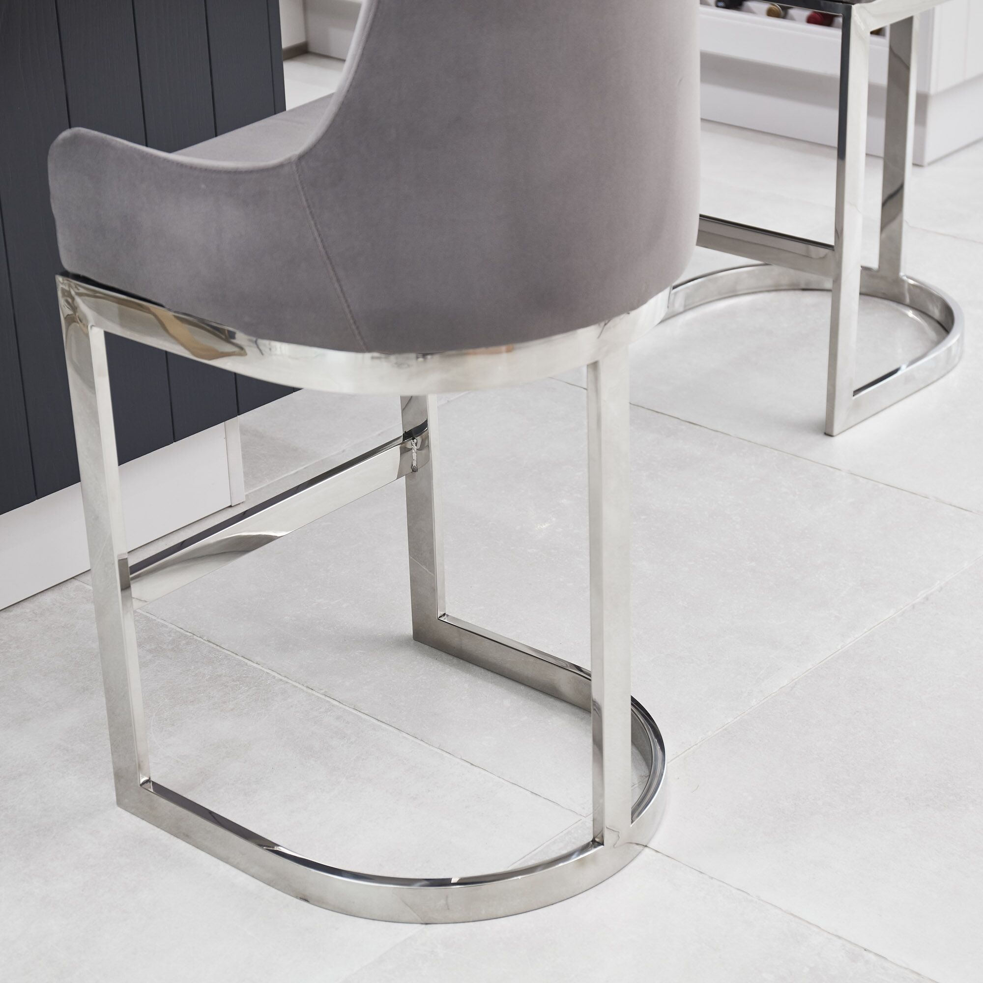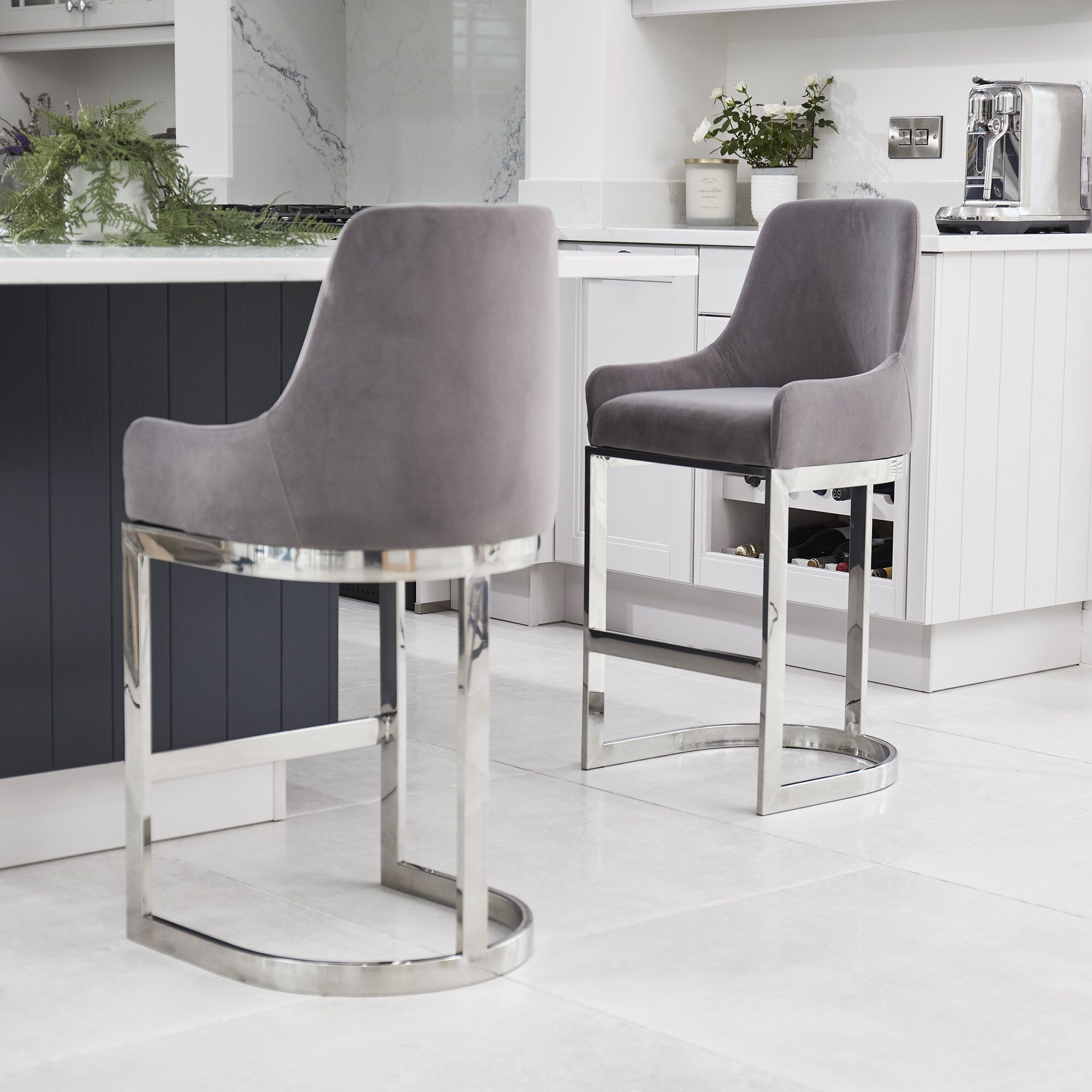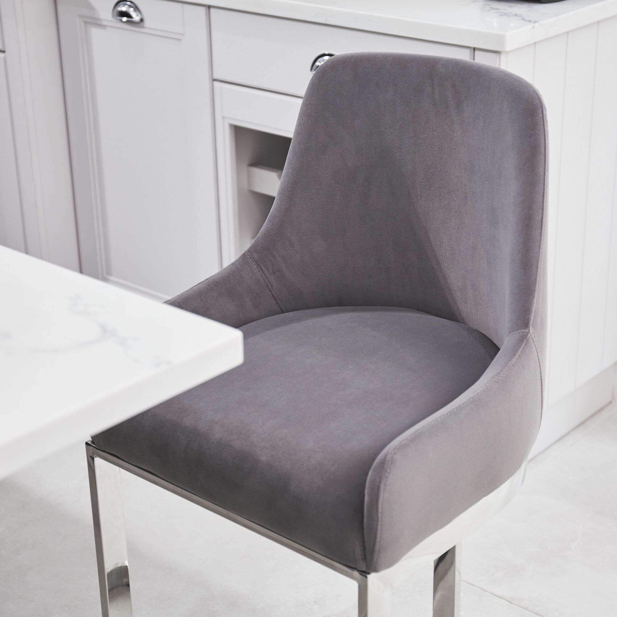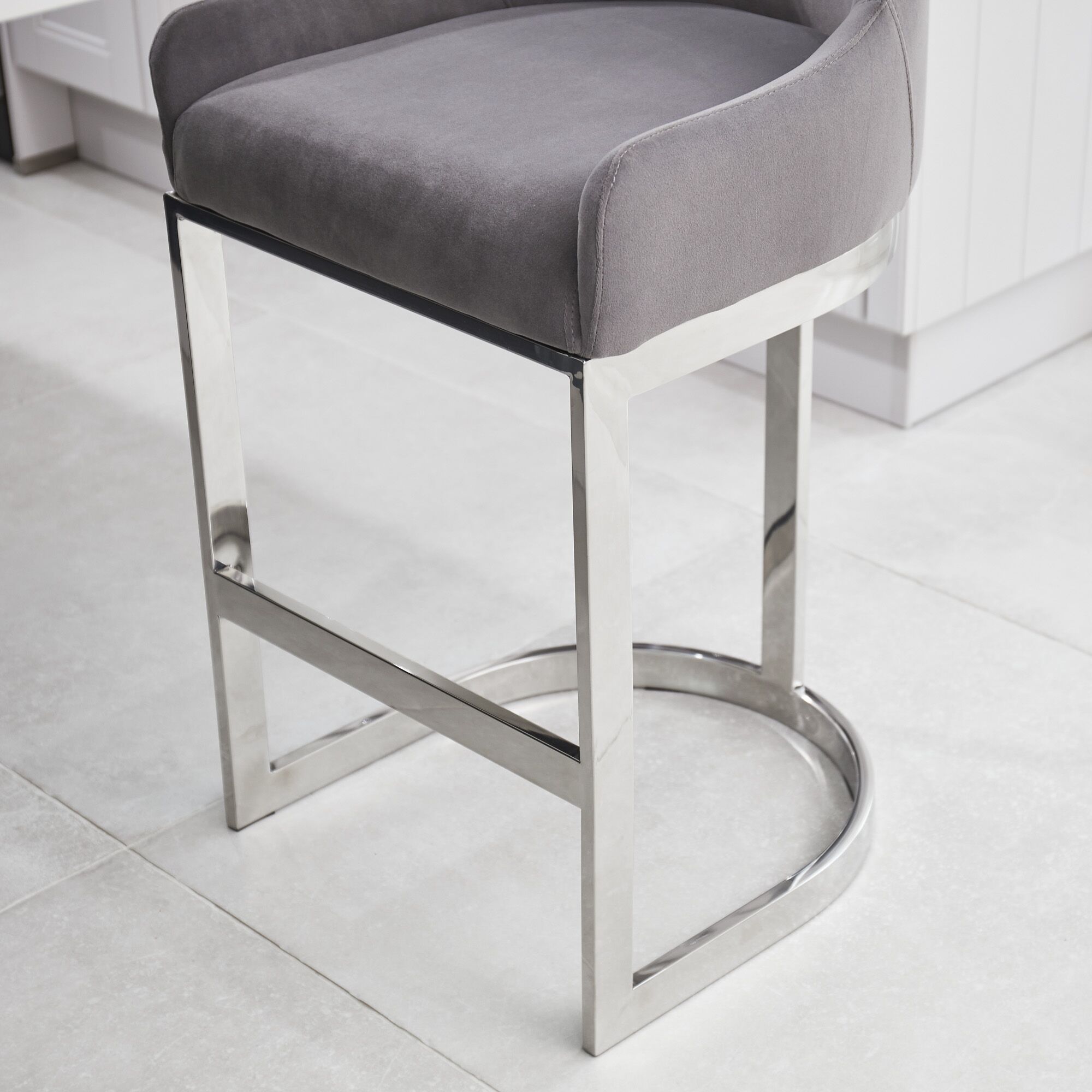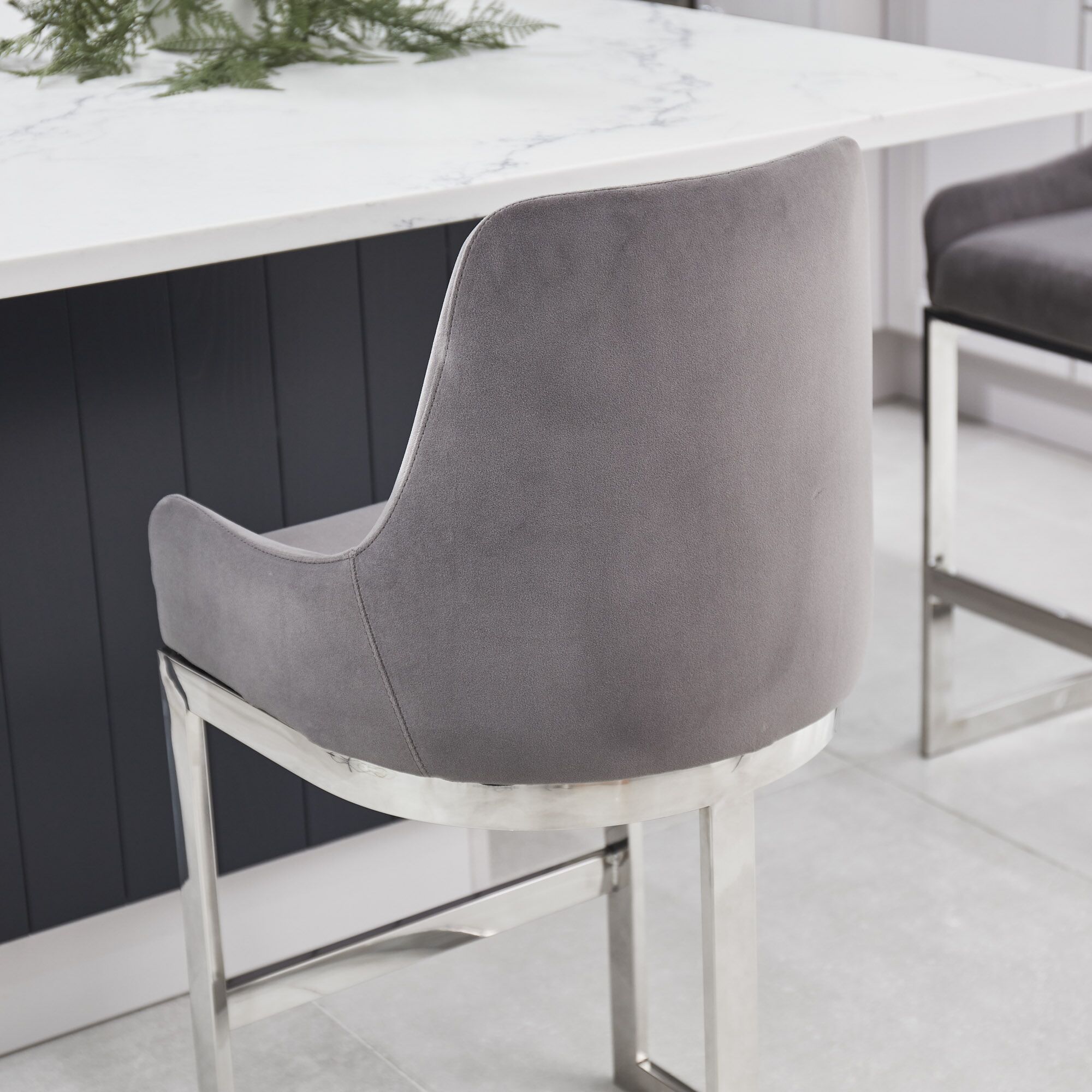 Annalise Grey Velvet Kitchen Barstool – Stainless Steel