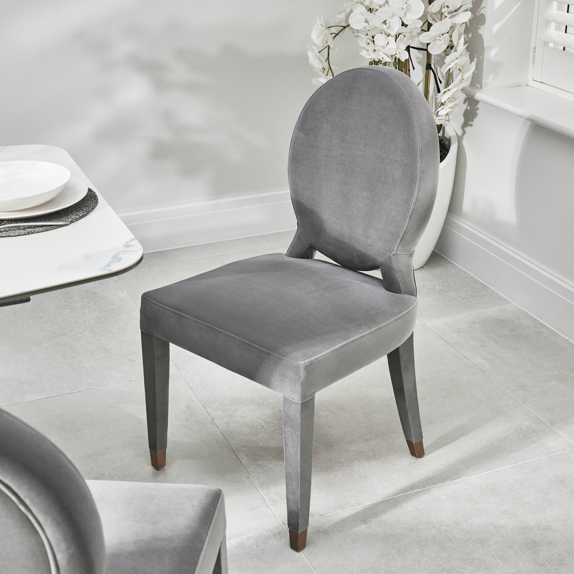 At Grosvenor Furniture, even dining is glam and this Victoria Chair will elevate your dining experience to a whole new level. Upholstered in beautiful plush grey velvet and boasting a high-density foam fill, this chair offers maximum comfort while enjoying meals with family and friends. Fully upholstered and complemented with gold accents.
